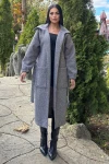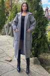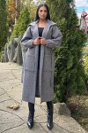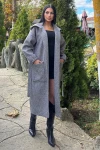 Antrasit Cepli, Balon Kol, Kemerli, Kalın Örgü Triko, Uzun Kaban