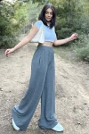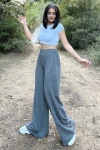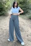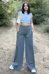 Antrasit Lastikli Yüksek Bel, Cepli, Bol Paça, Salaş Pantolon