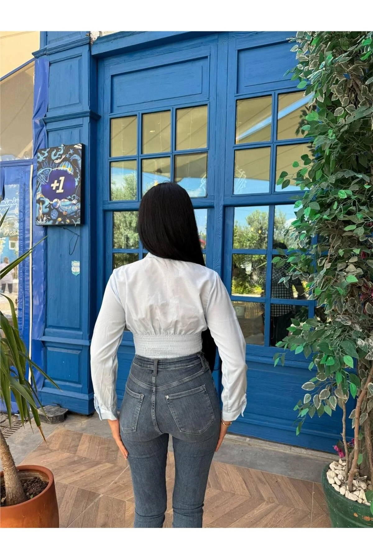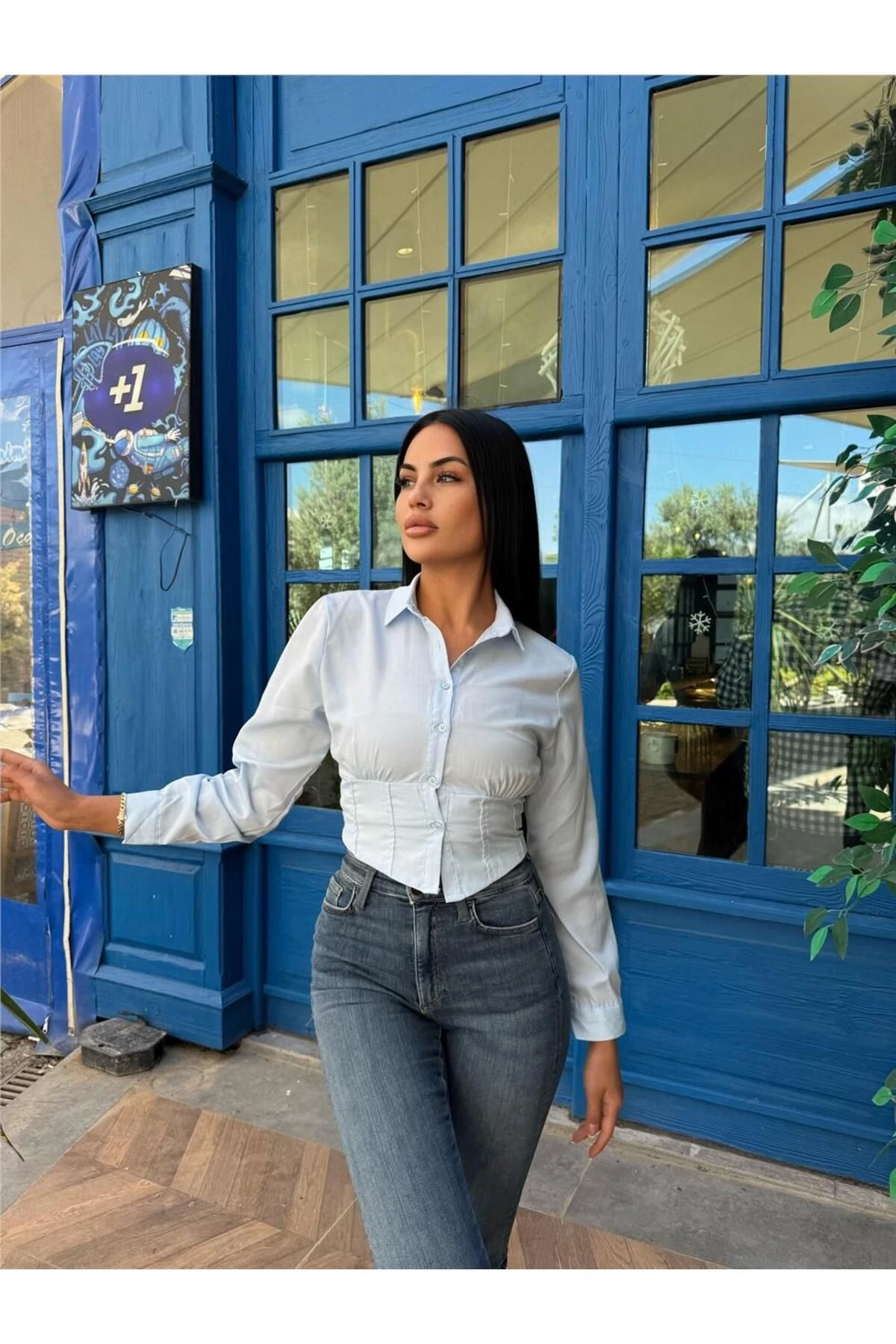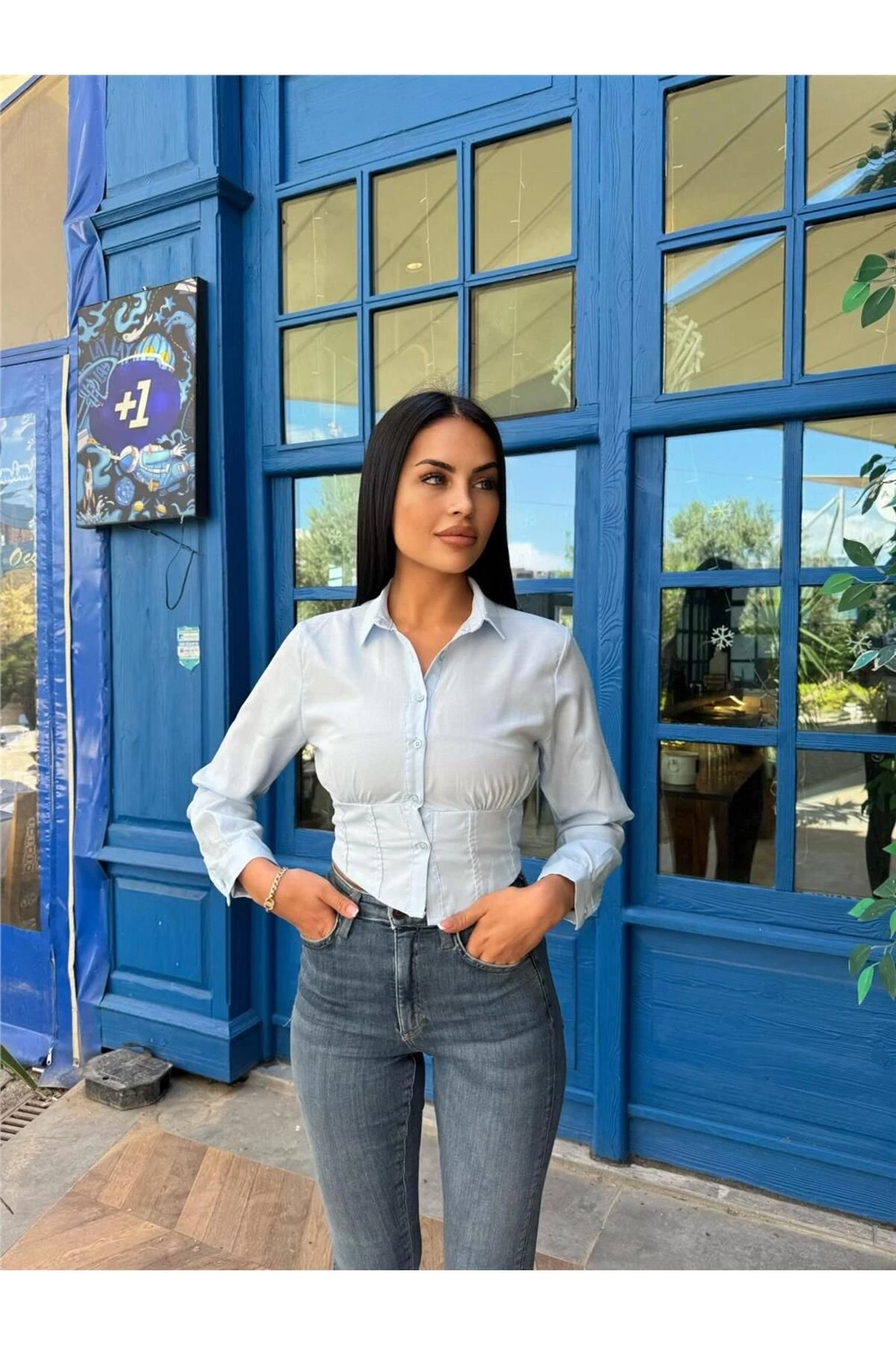 Bebe Mavi Polyester Parçalı Desenli Gömlek