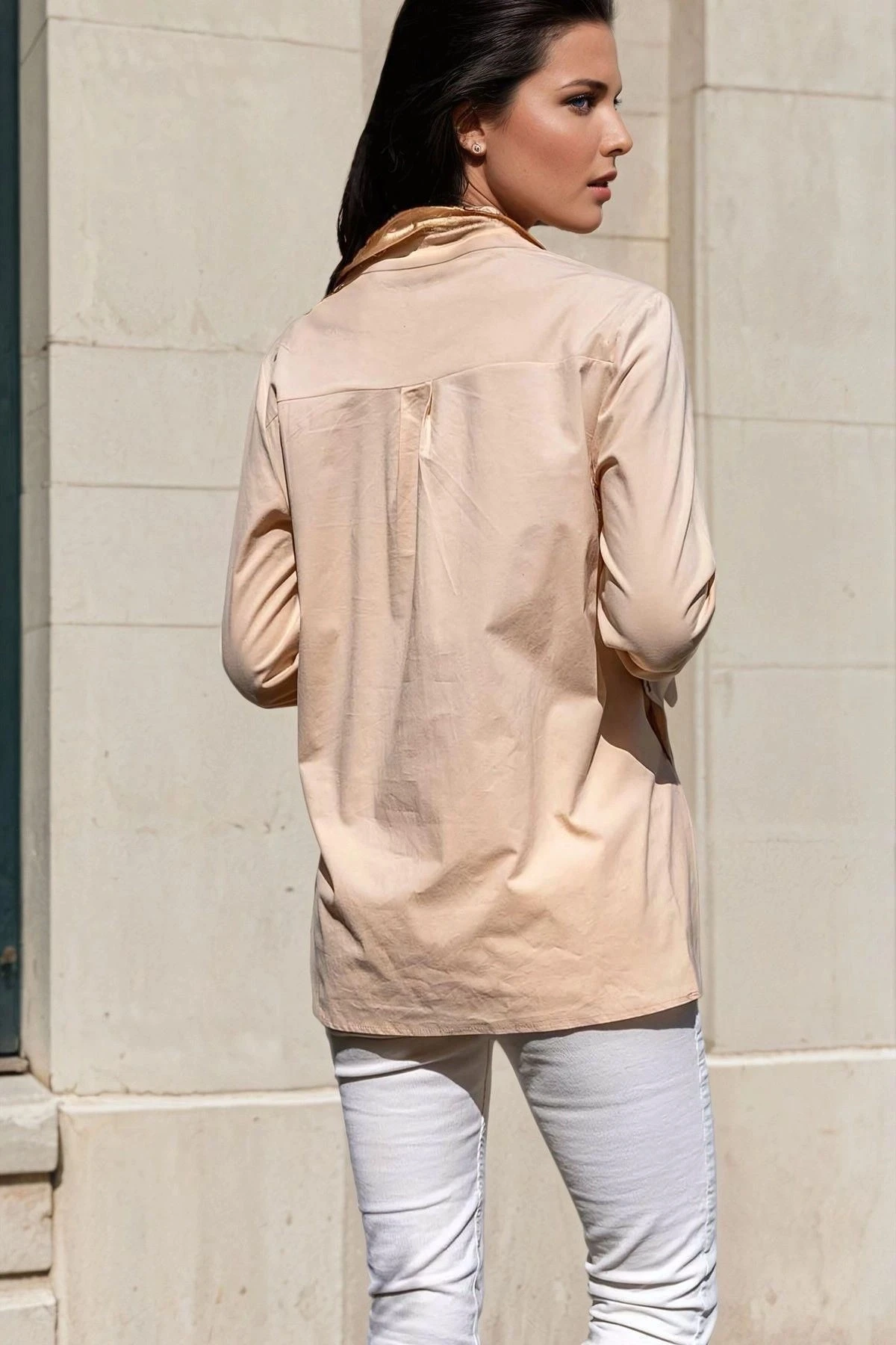 Bej Asimetrik Kesim, Yan Düğme Detaylı Gömlek