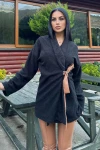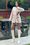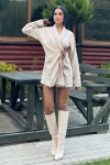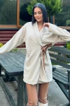Bej Kruvaze Yaka, Deri Kuşaklı, Kuzu Peluş Hırka Ceket