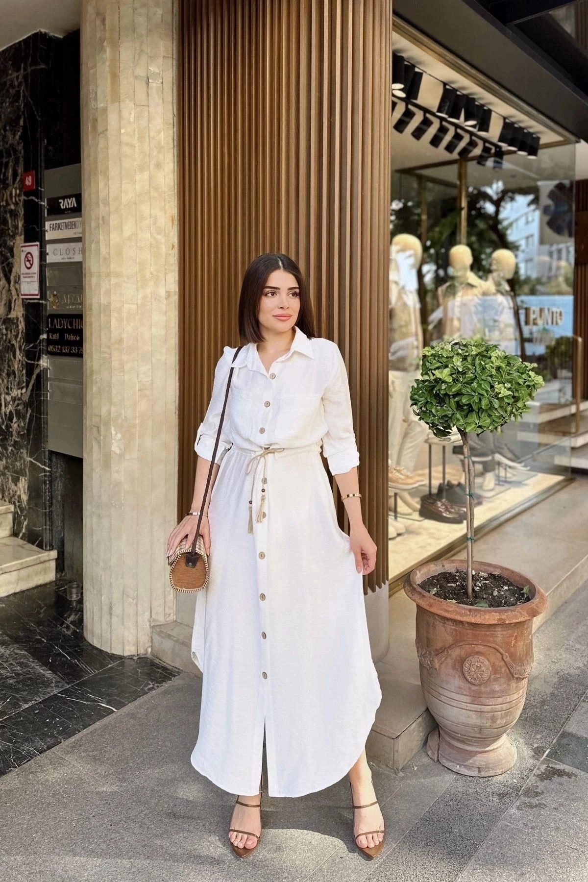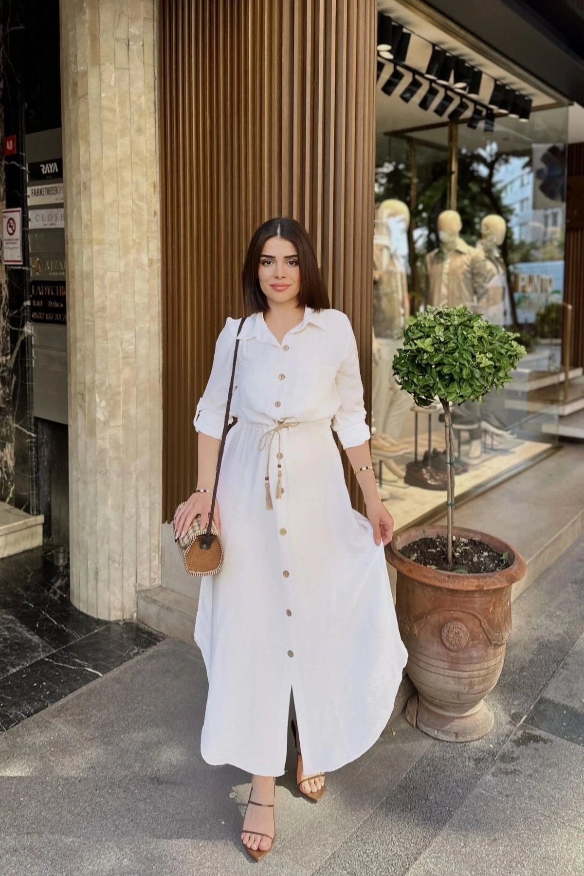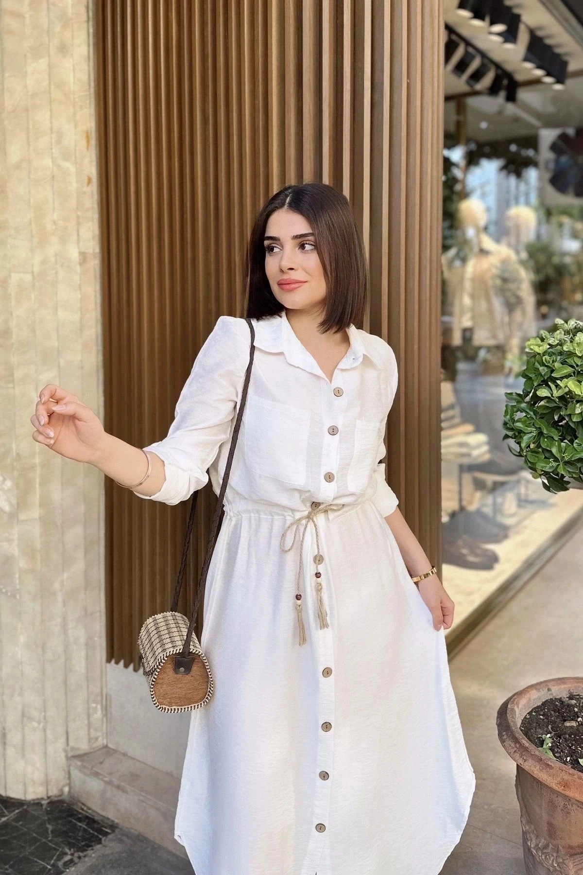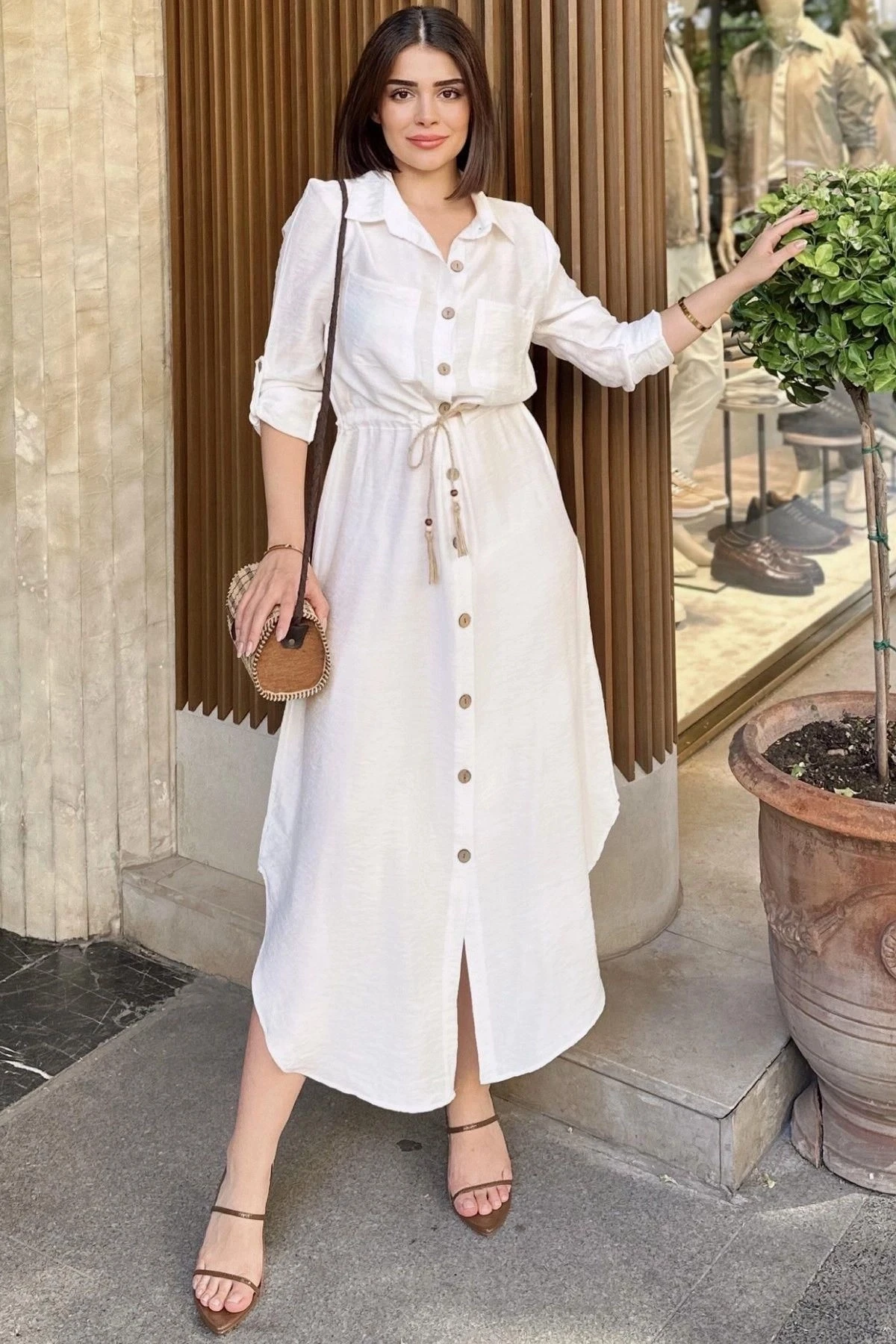 Beyaz Katlamalı Uzun Kol, Keten/Airobin Kumaşlı Uzun Gömlek Elbise, zarafeti ve şıklığı bir arada sunuyor.; Bu elbise, %60 pamuk ve %40 polyester karışımı kumaş kullanılarak özenle tasarlanmıştır.; Kumaş seçimi, elbisenin konfor ve dayanıklılık sağlamasını hedefler.; %60 pamuk ve %40 polyester karışımı kumaş, doğal bir dokuya sahiptir ve aynı zamanda dayanıklı bir yapıya sahiptir.; Keten/Airobin kumaşın kullanımı, elbiseye hafiflik ve nefes alabilirlik özelliği kazandırır.; Beyaz renk seçimi, elbiseye temiz, zarif ve modern bir görünüm sunan bir seçenektir.; Katlamalı uzun kol detayı, elbiseye şıklık ve hareketlilik katarken aynı zamanda kol bölgesinde rahat bir kullanım sağlar.; Beli büzgülü tasarımı, elbisenin bel kısmında şekil almasını sağlar ve belinizi vurgular.; Hasır kemer detayı, elbiseye özgün bir dokunuş ekler ve tarzınızı tamamlar.; Bu detay, elbisenin şıklığını artırır ve göze çarpan bir aksesuar olarak dikkat çeker.; Uzun kesimi, elbiseye zarif bir görünüm katar ve her vücut tipine uyum sağlar.; Beyaz Katlamalı Uzun Kol, Keten/Airobin Kumaşlı Uzun Gömlek Elbise, hem günlük hayatta hem de özel etkinliklerde şıklığı ve rahatlığı bir arada sunan bir seçenektir.; Temiz ve modern tasarımıyla gardırobunuzun vazgeçilmez bir parçası olacak.; Kendinizi özgür ve şık hissetmek için bu elbiseyi tercih edebilirsiniz.