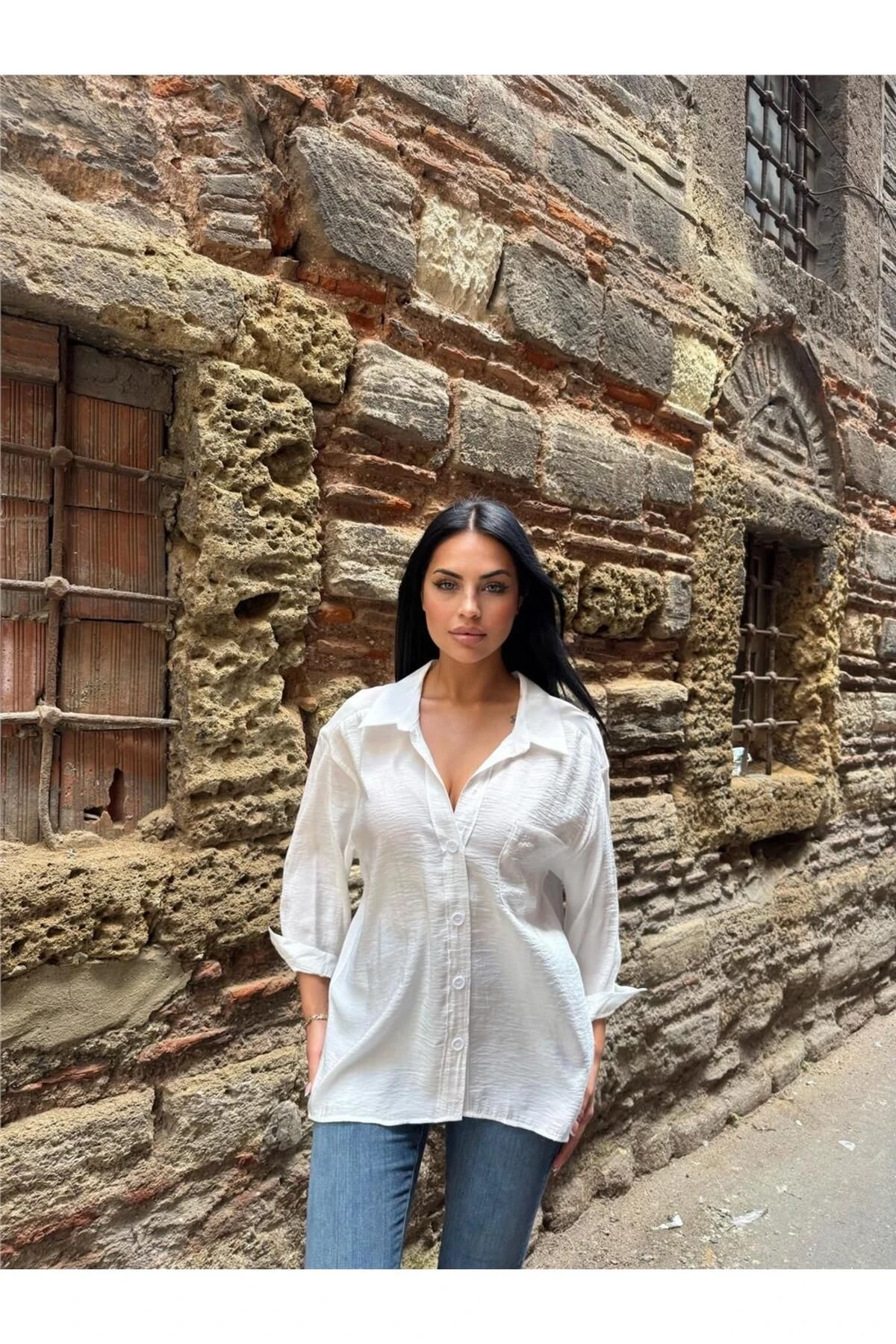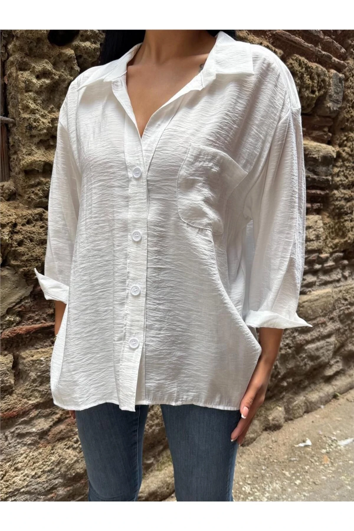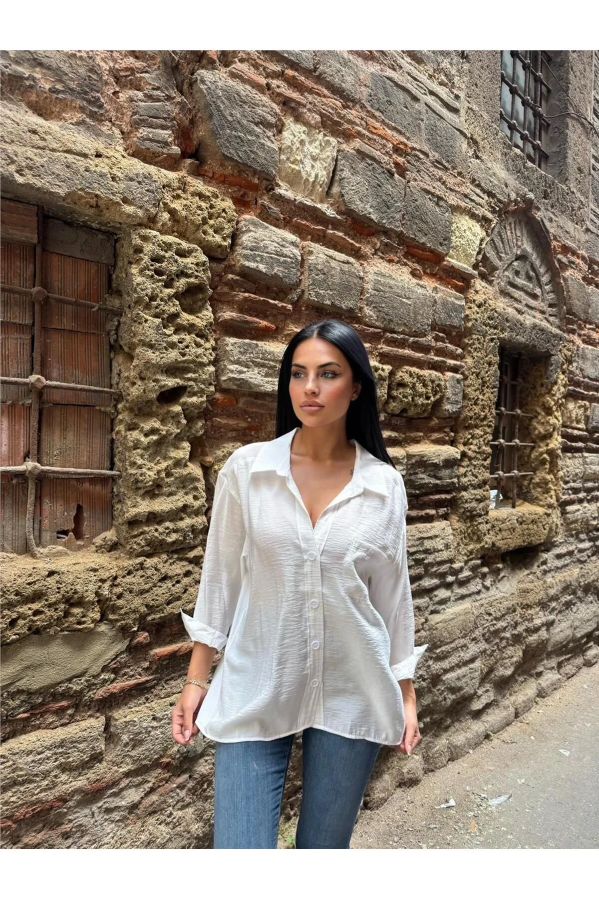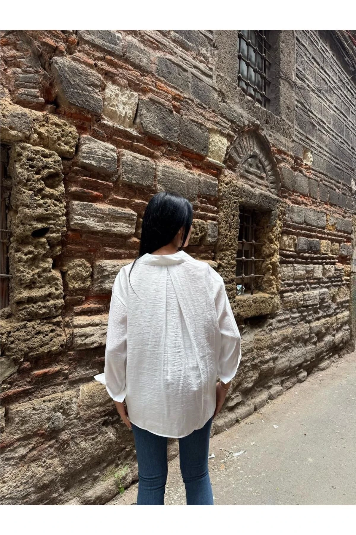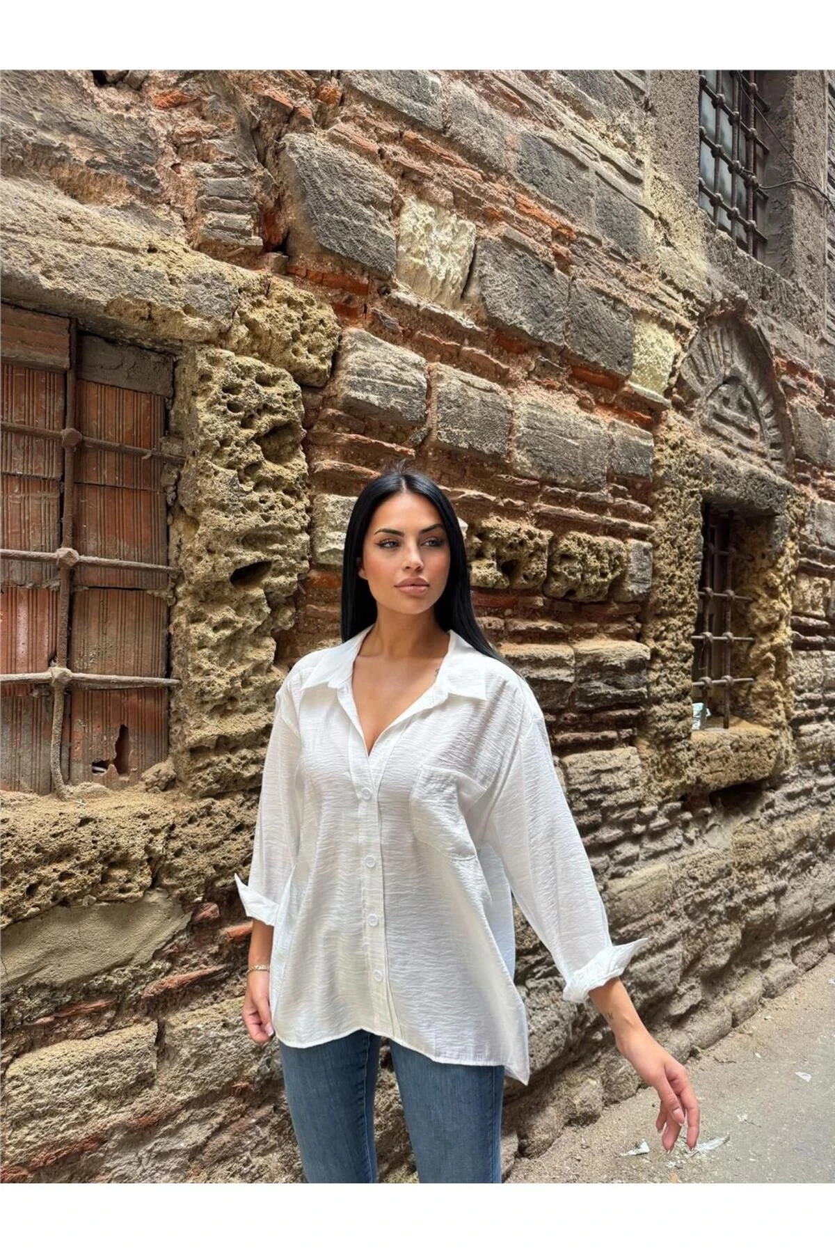 Beyaz Pamuklu Cepli Düşük Gömlek