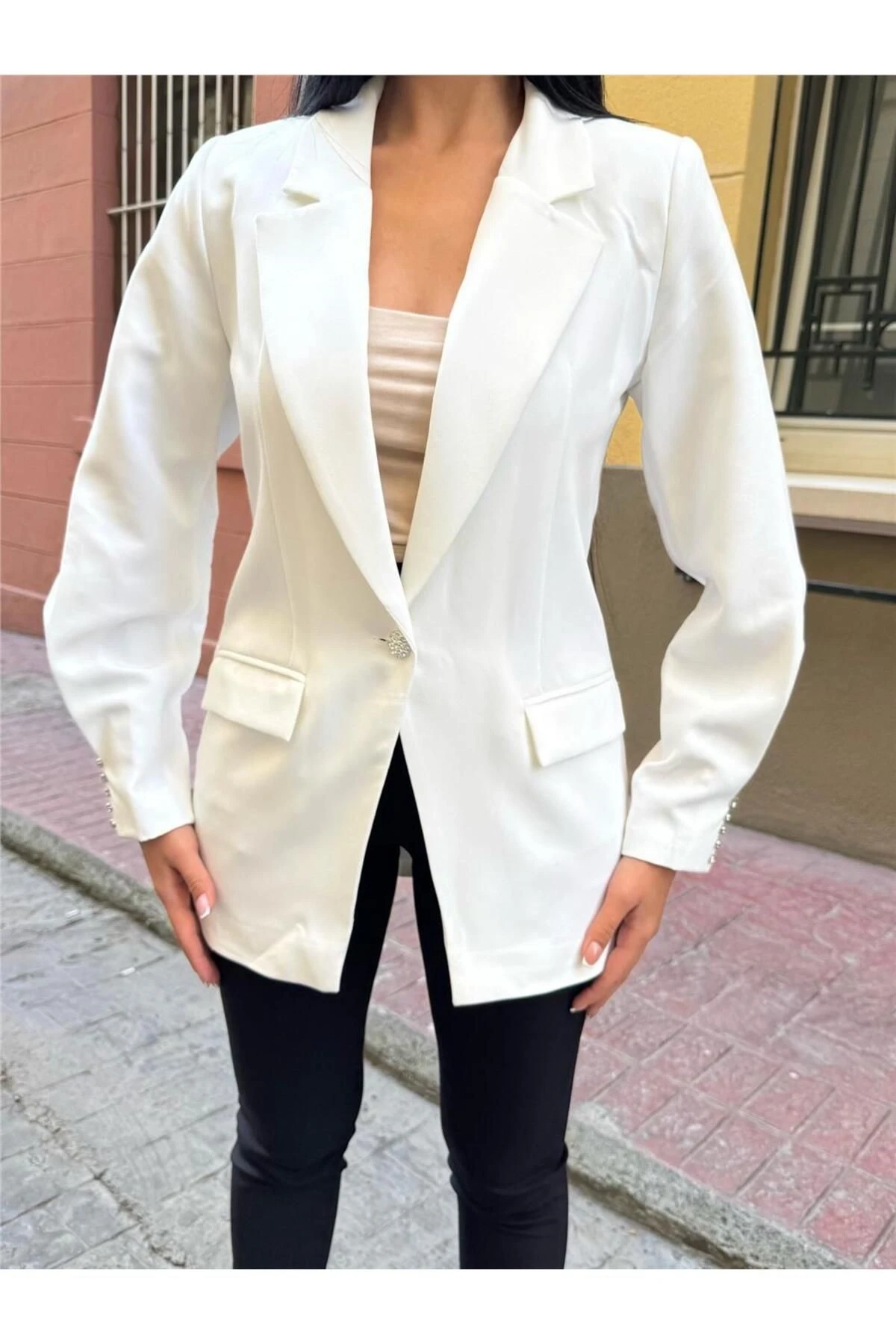 Beyaz Kadın Blazer Ceket