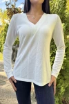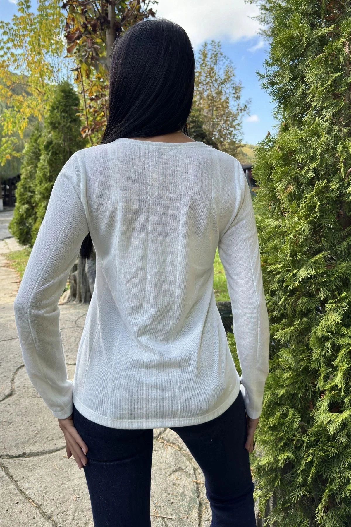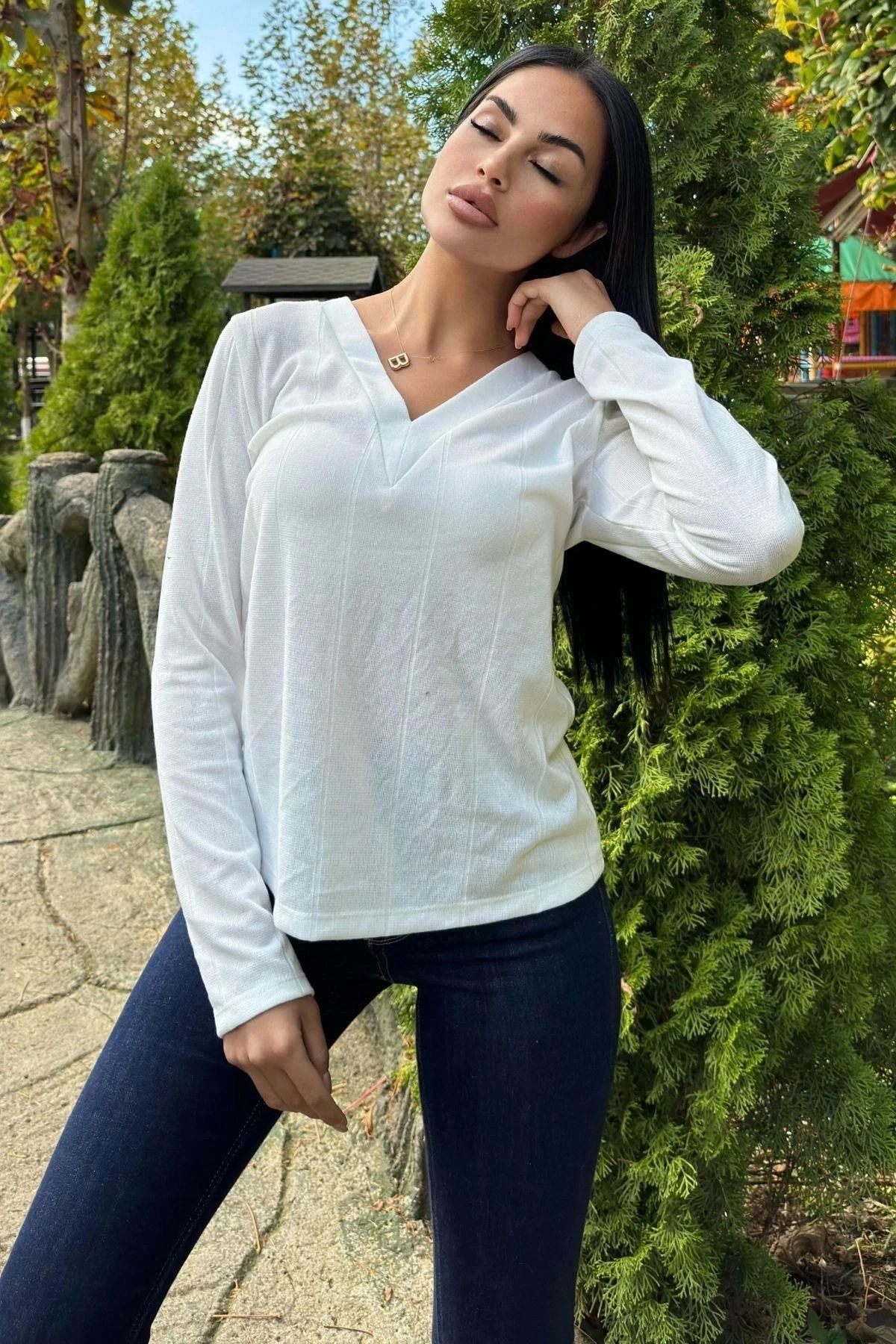 Beyaz V Yaka, Uzun Kol, Triko Bluz