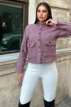 Bordo Dik Yaka, Çift Kapaklı Cep, Kısa Kesim, Diagonal Kaşe Ceket
