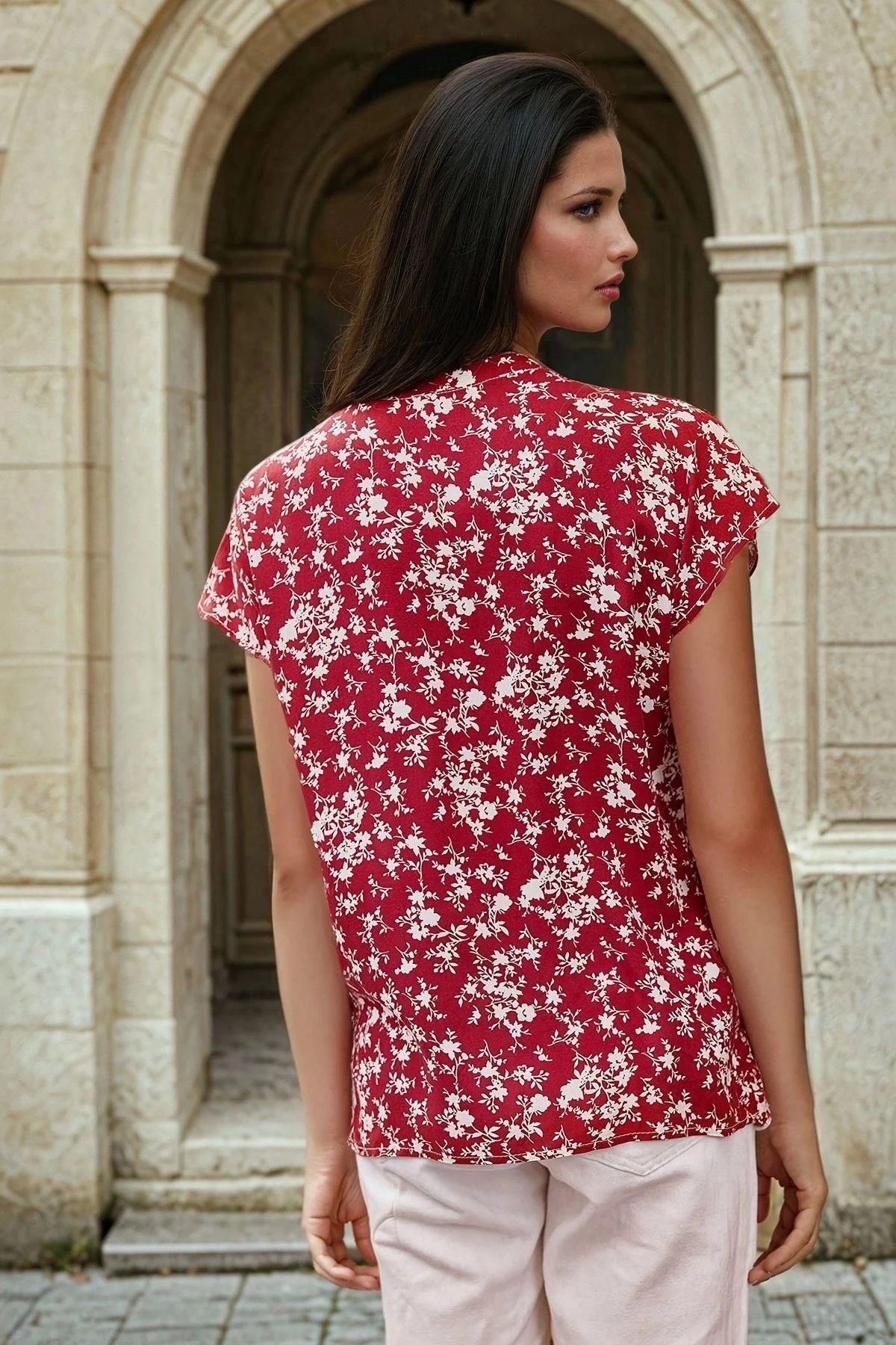 Bordo, Hakim Yaka, Floral Desenli, Düğmeli, Gömlek