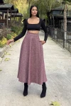 Bordo Yüksek Bel, Cepli, Kiloş Kesim, Uzun Kaşe Etek