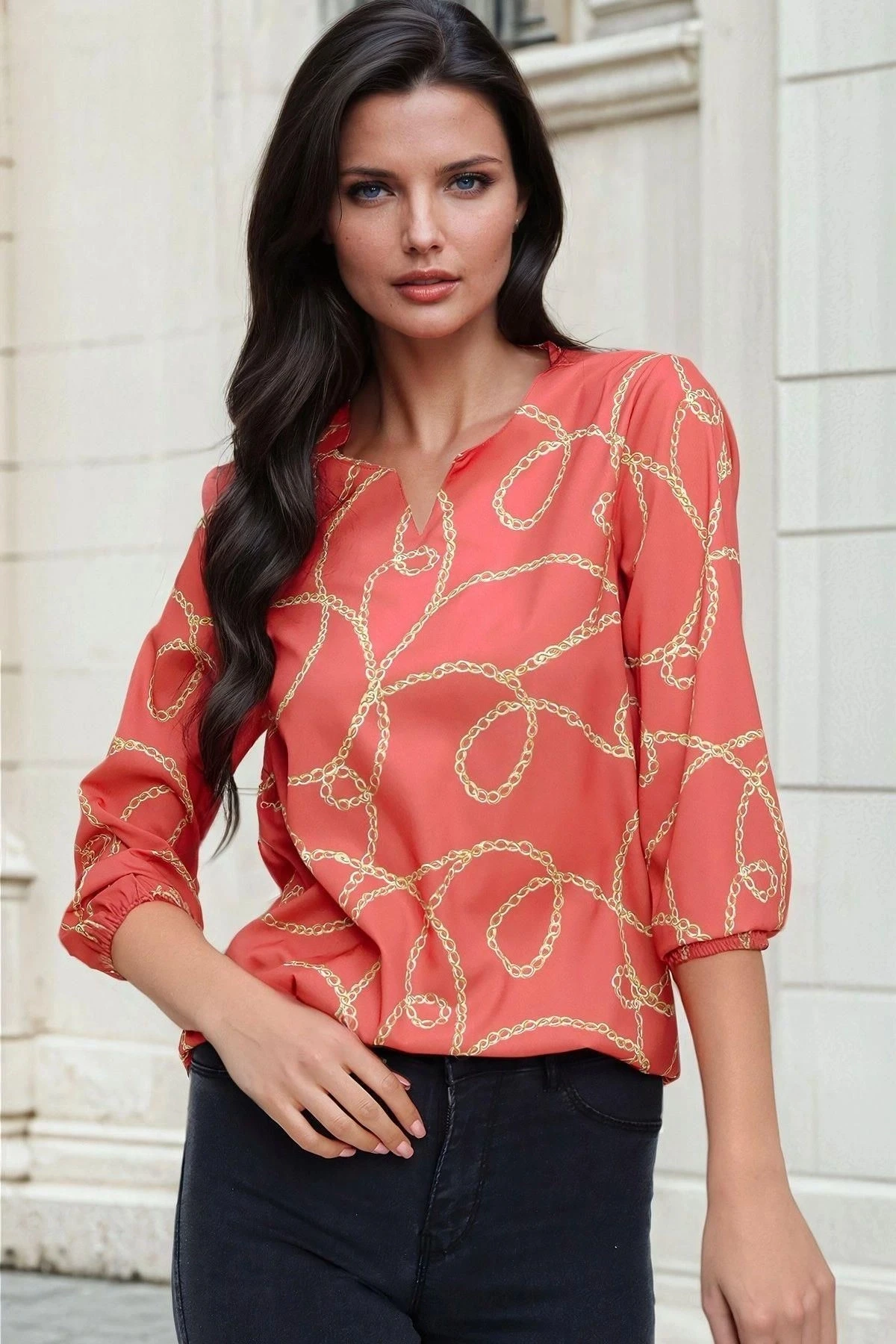 Bordo, Zincir Desenli, Lastikli Kol Detaylı, Bluz