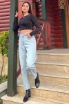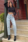 Buz Mavi Yüksek Bel, Mom Jean Kot Pantolon