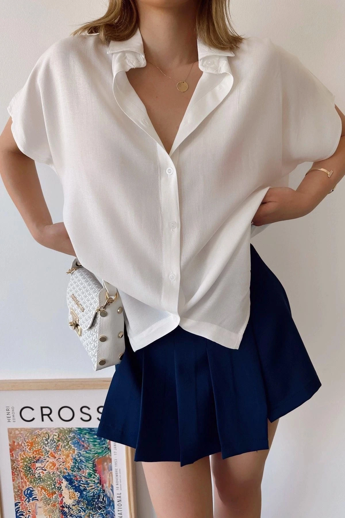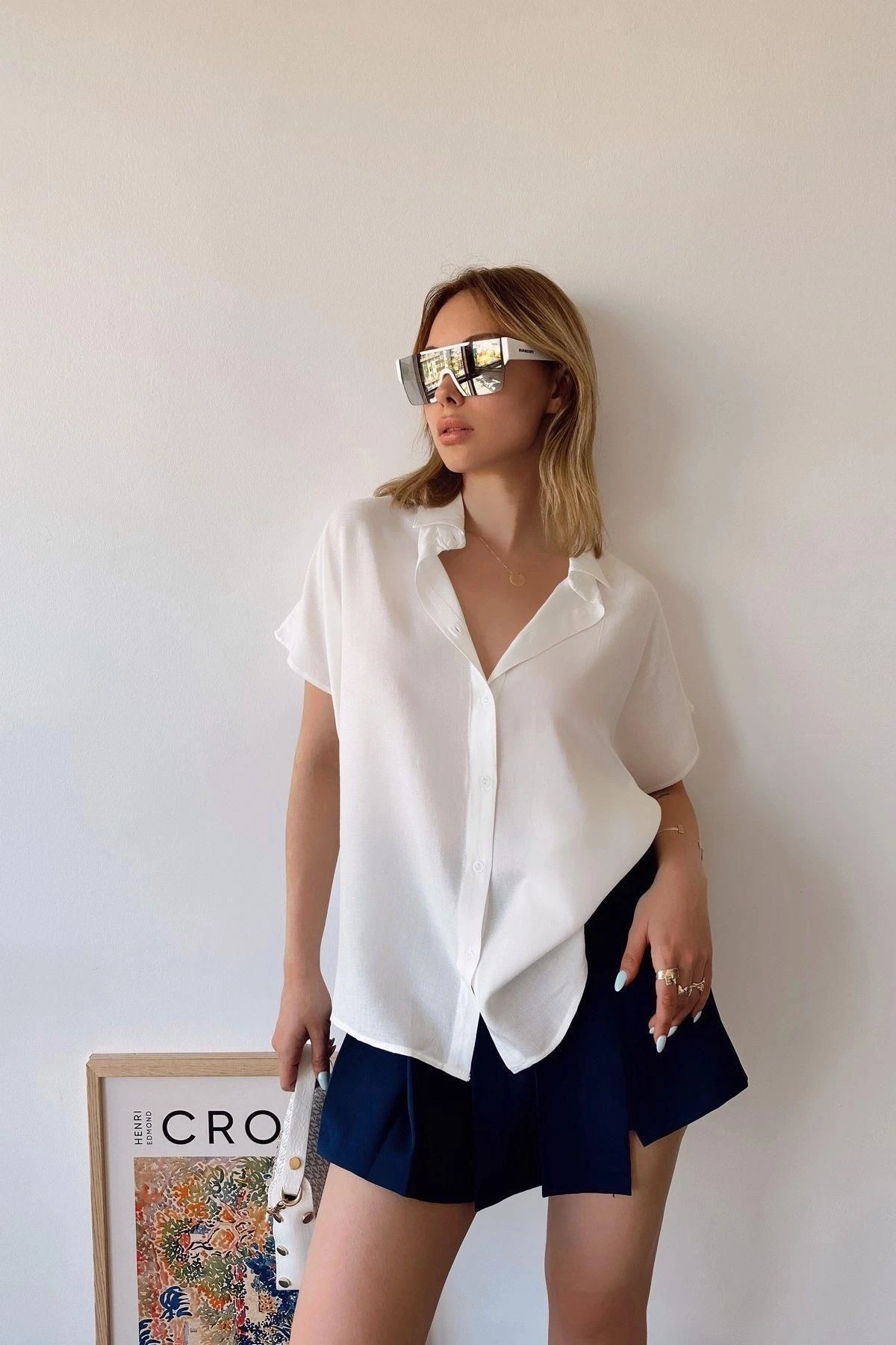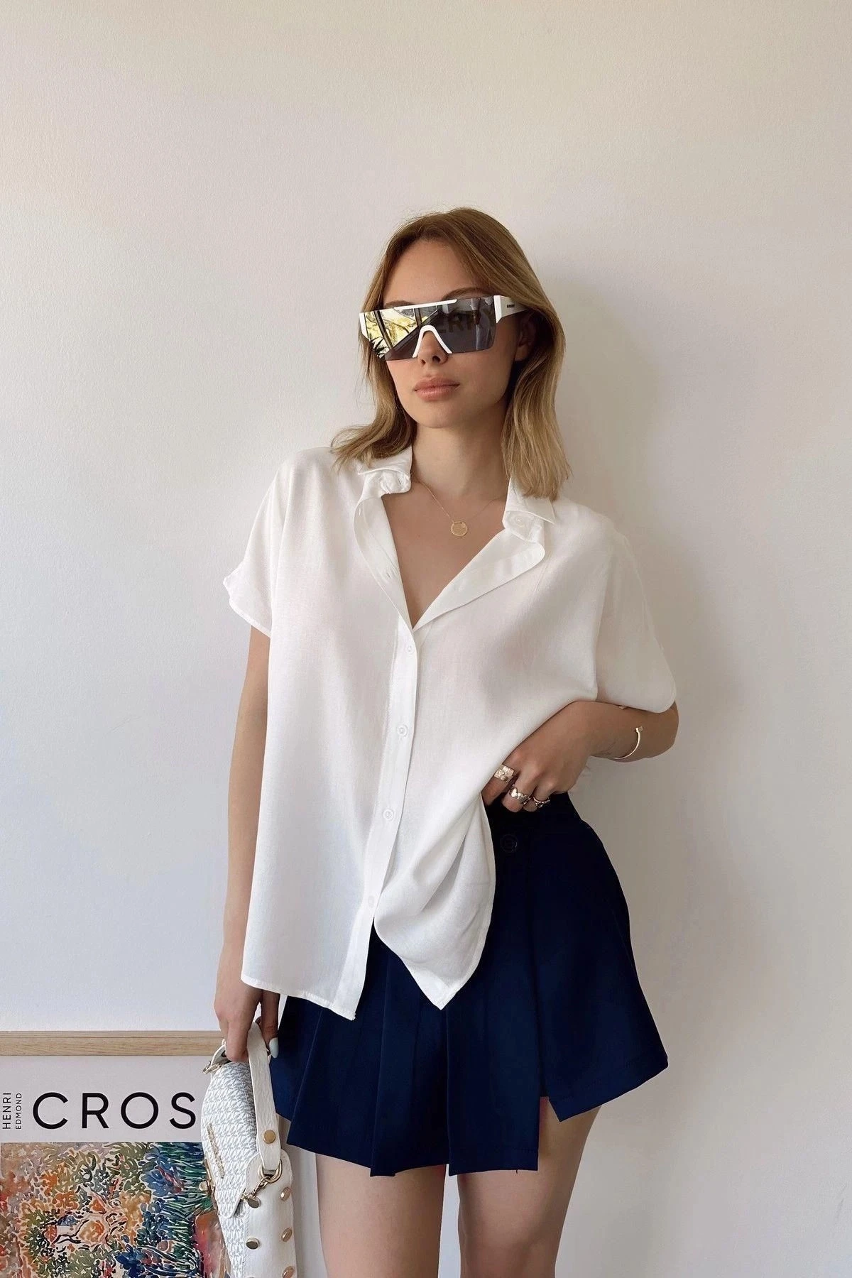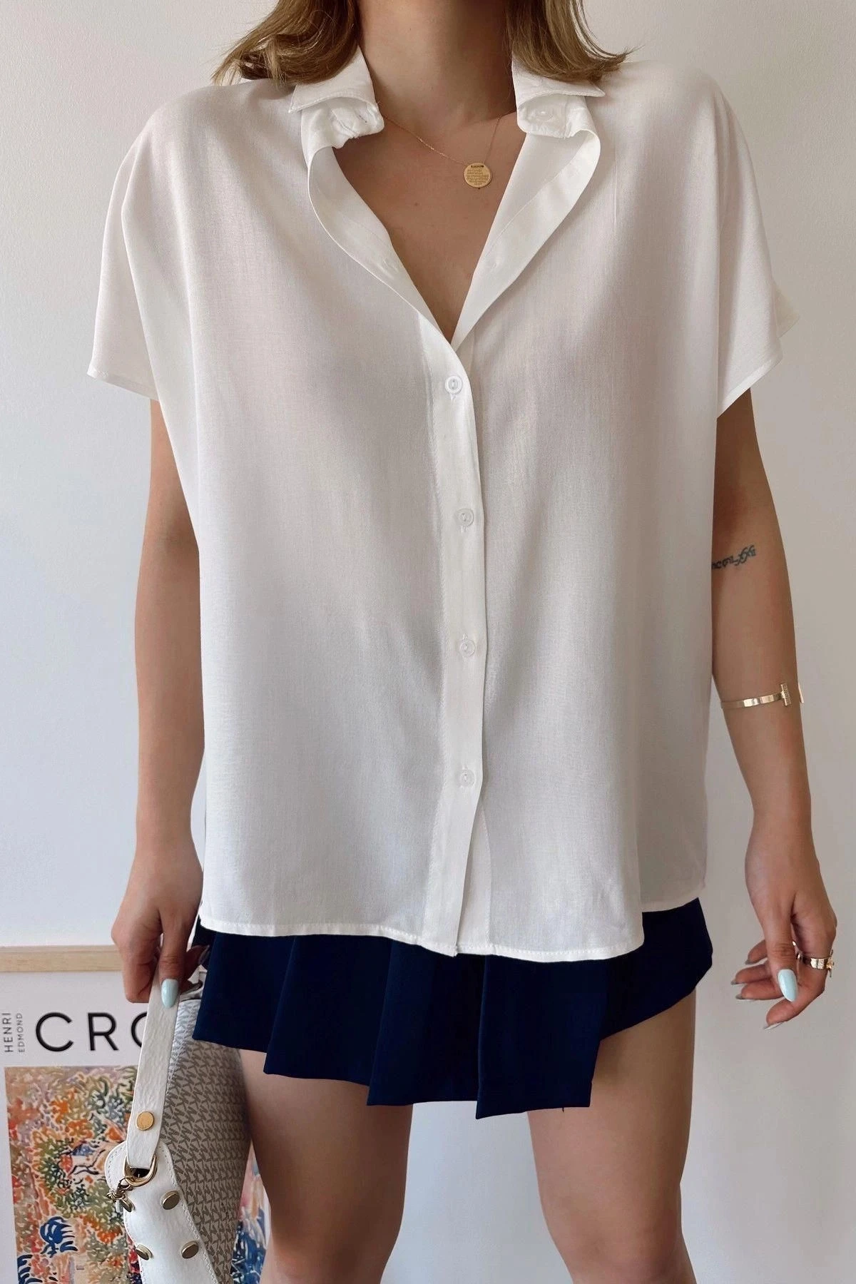 Ekru Klasik Yaka, Kısa Kol, Dokulu Kumaşlı Salaş & Rahat Kalıplı Gömlek, hem şıklığı hem de rahatlığı bir arada sunuyor.; Bu gömlek, %100 viskon kumaş kullanılarak özenle tasarlanmıştır.; Kumaş seçimi, gömleğin konfor ve hafiflik sağlamasını hedefler.; %100 viskon kumaş, yumuşak ve pürüzsüz bir dokuya sahiptir.; Aynı zamanda hafif ve nefes alabilir bir yapıya sahiptir, bu da gömleği yaz aylarında rahat bir şekilde giyebilmenizi sağlar.; Ekru renk seçimi, gömleğe zarif ve sade bir görünüm katar.; Bu nötr renk, kolaylıkla kombinlenebilen ve çeşitli stil seçeneklerine uyum sağlayabilen bir seçenektir.; Klasik yaka detayı, gömleğe zarafet ve şıklık katarken kısa kol tasarımı da serinlik sağlar.; Dokulu kumaş, gömleğe farklı bir doku ve görünüm katar.; Bu detay, gömleği diğerlerinden ayıran özgün bir dokunuş sunar.; Salaş ve rahat kalıp/kesimi, gömleği gevşek ve rahat bir şekilde taşımanızı sağlar.; Ekru Klasik Yaka, Kısa Kol, Dokulu Kumaşlı Salaş & Rahat Kalıplı Gömlek, hem günlük hayatta hem de özel etkinliklerde şıklığı ve rahatlığı bir arada sunan bir seçenektir.; %100 viskon kumaşı ve özgün tasarımıyla, gardırobunuzun vazgeçilmez bir parçası olacak.; Kendinizi özgür ve rahat hissetmek için bu gömleği tercih edebilirsiniz.