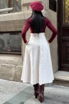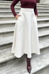 Ekru Yüksek Bel, Cepli, Kiloş Kesim, Kırçıllı Kaşe Uzun Etek