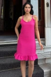 Fuşya Volanlı Midi Elbise Gofre Kumaş