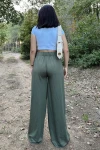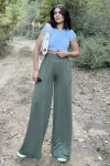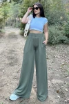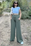 Haki Lastikli Yüksek Bel, Cepli, Bol Paça, Salaş Pantolon