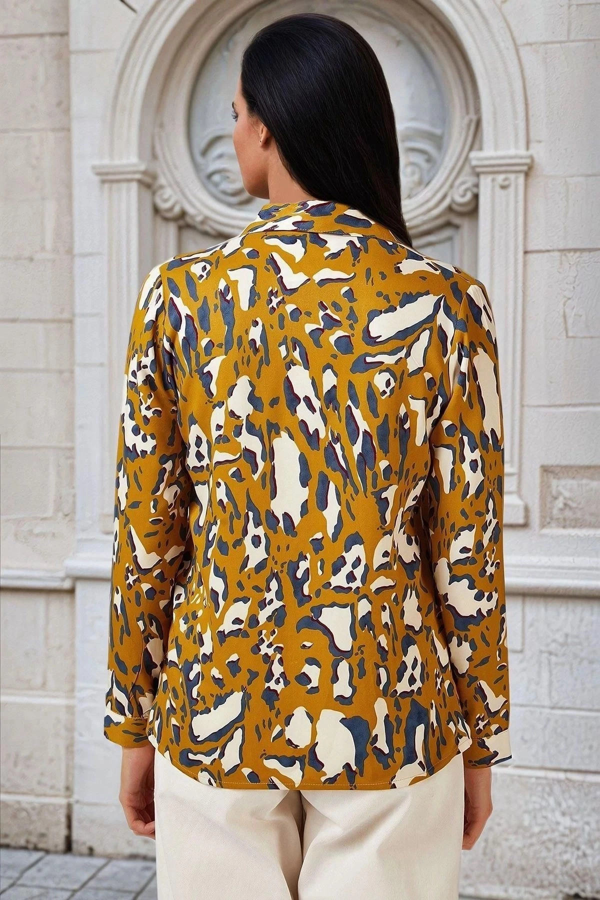 Hardal Geometrik Desenli, Klasik Kesim Uzun Kollu Gömlek