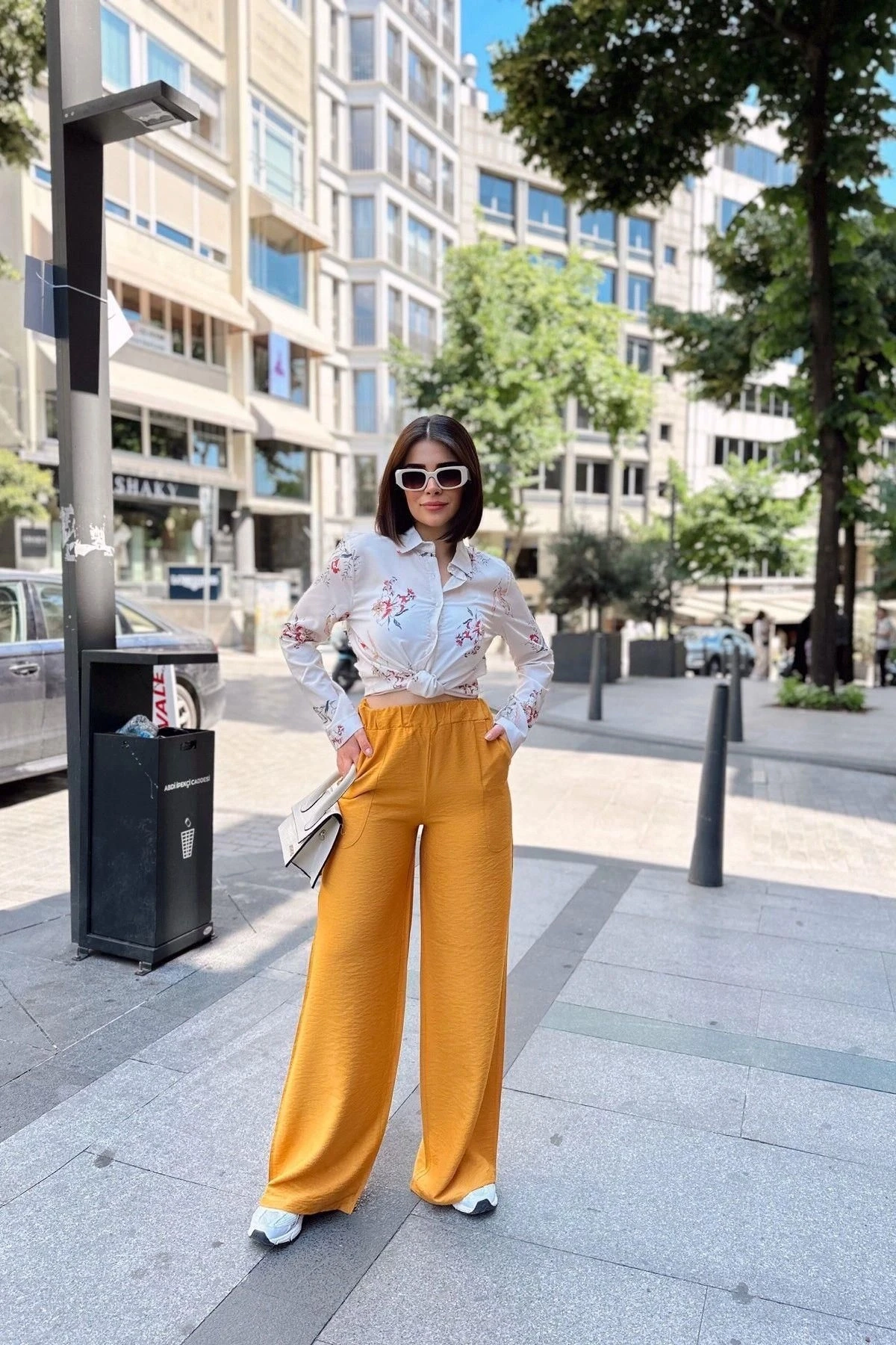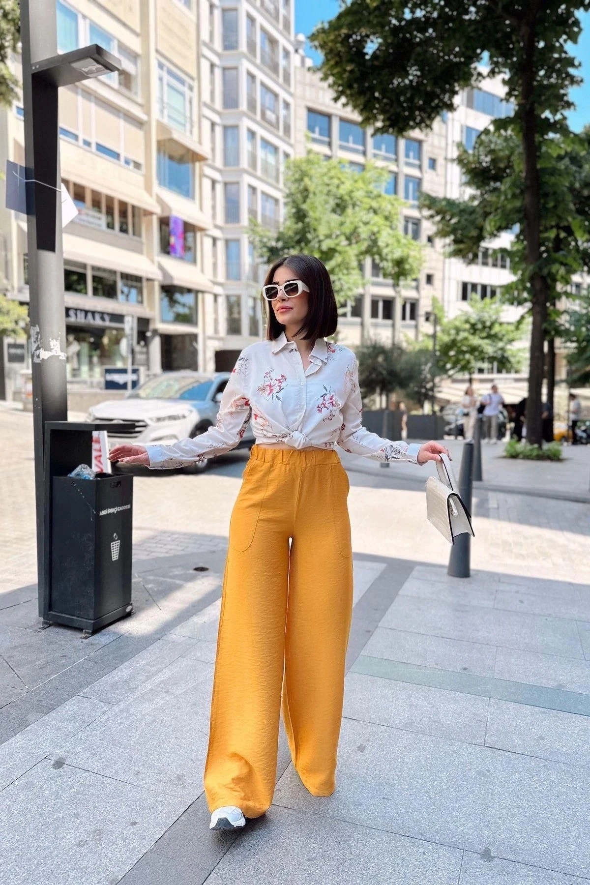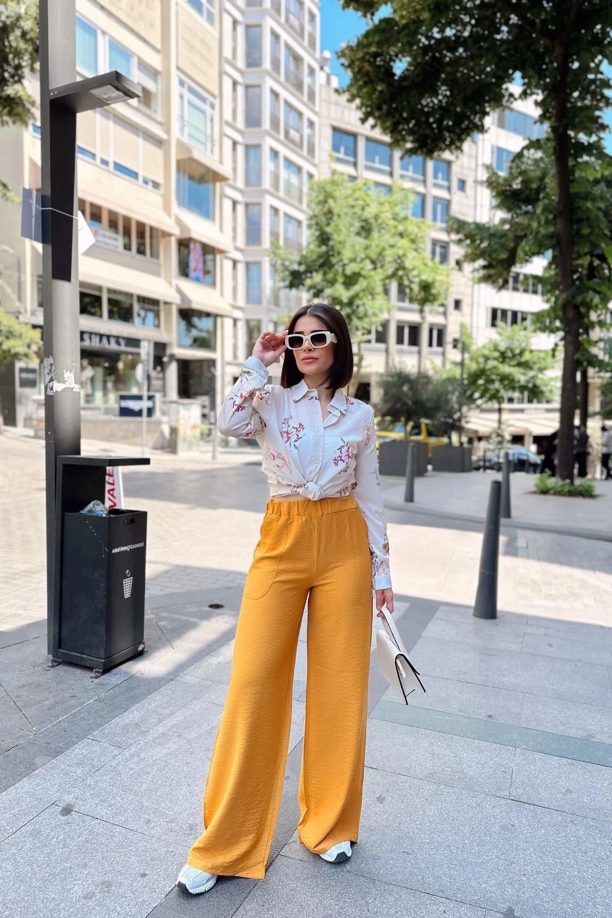Hardal İspanyol Bol Paça, Lastikli Bel, Keten/Airobin Kumaşlı, Salaş & Rahat, Cepli, İç Göstermez Pantolon, hem şık hem de rahat bir seçenektir.; Bu pantolon, %60 cotton %40 polyester karışımı kumaş kullanılarak özenle tasarlanmıştır.; Kumaş seçimi, pantolonun konfor ve dayanıklılık sağlamasını hedefler.; %60 cotton %40 polyester karışımı kumaş, pamuk ve polyesterin avantajlarını bir araya getirir.; Pamuk, yumuşak ve nefes alabilir bir dokuya sahipken, polyester ise dayanıklı ve kolay bakım gerektirmeyen bir yapıya sahiptir.; Bu karışım, pantolonun rahat bir giyim deneyimi sunmasını ve uzun süreli kullanıma dayanıklı olmasını sağlar.; Hardal renk seçimi, pantolona enerjik ve canlı bir görünüm kazandırır.; Hardal, göze çarpan ve trend renkler arasında yer alan bir seçimdir.; Bu renk, pantolonu kombinlemesi kolay ve dikkat çekici bir parça haline getirir.; İspanyol bol paça ve lastikli bel tasarımı, pantolona salaş ve rahat bir görünüm katarken, keten/airobin kumaş detayı, pantolona hafiflik ve nefes alabilirlik sağlar.; Bu özellikler, pantolonun günlük giyim için ideal olduğunu gösterir.; Cepli tasarımı, pantolona kullanışlılık katar ve küçük eşyalarınızı taşımanızı sağlar.; İç göstermez özelliği sayesinde, pantolonu rahatlıkla kullanabilir ve şık görünebilirsiniz.; Hardal İspanyol Bol Paça, Lastikli Bel, Keten/Airobin Kumaşlı, Salaş & Rahat, Cepli, İç Göstermez Pantolon, hem tarzınızı yansıtacak hem de rahatlığınızı ön planda tutacak bir seçenektir.; Kombinlerinizi tamamlayacak ve her anınızda size eşlik edecek.; Kendinizi özgür hissedin ve stilinizi konuşturun.