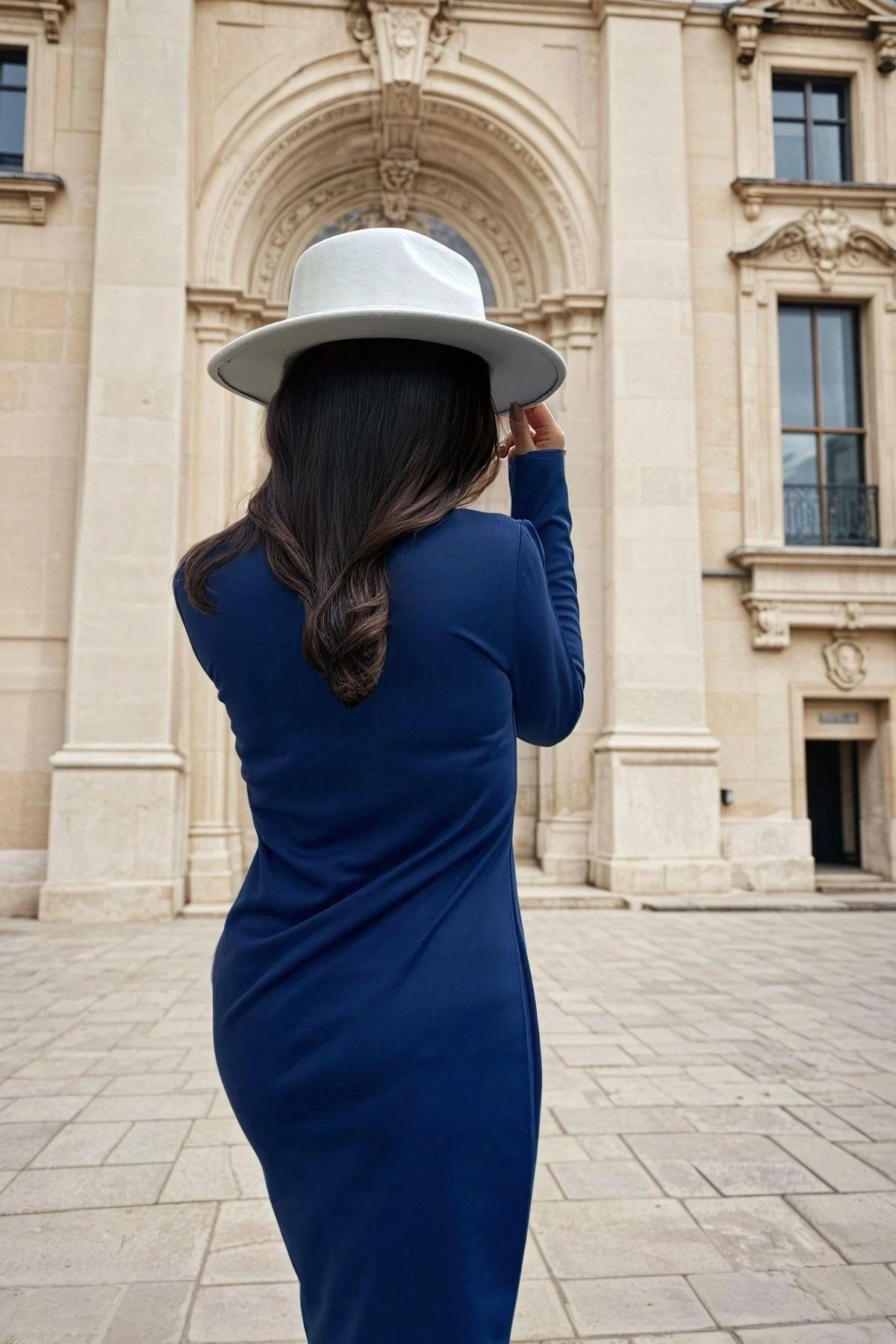 İndigo Yarım Balıkçı Yaka, Uzun Kollu Triko Elbise
