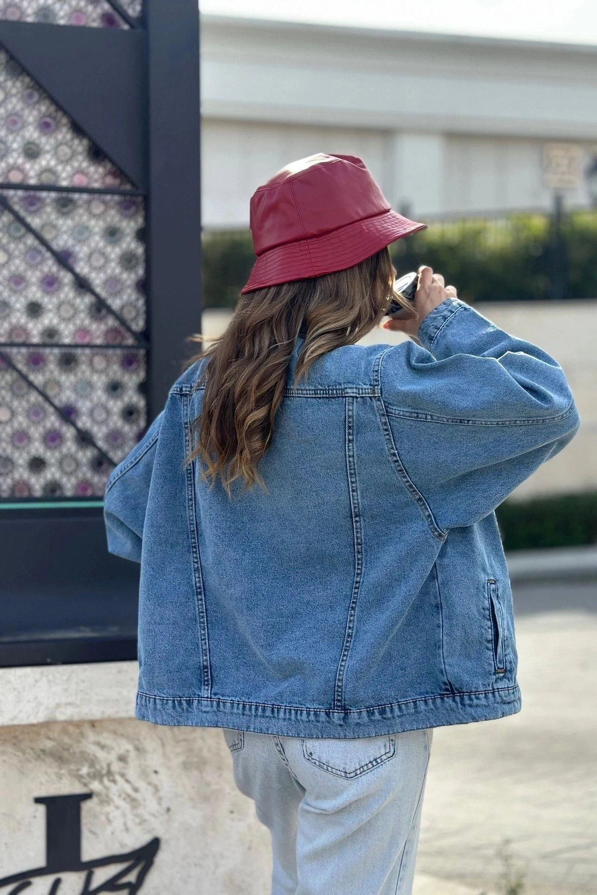 Kadın Açık Mavi Çift Cepli, Kaliteli Jeans Kumaş, Salaş Kot Ceket