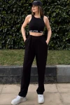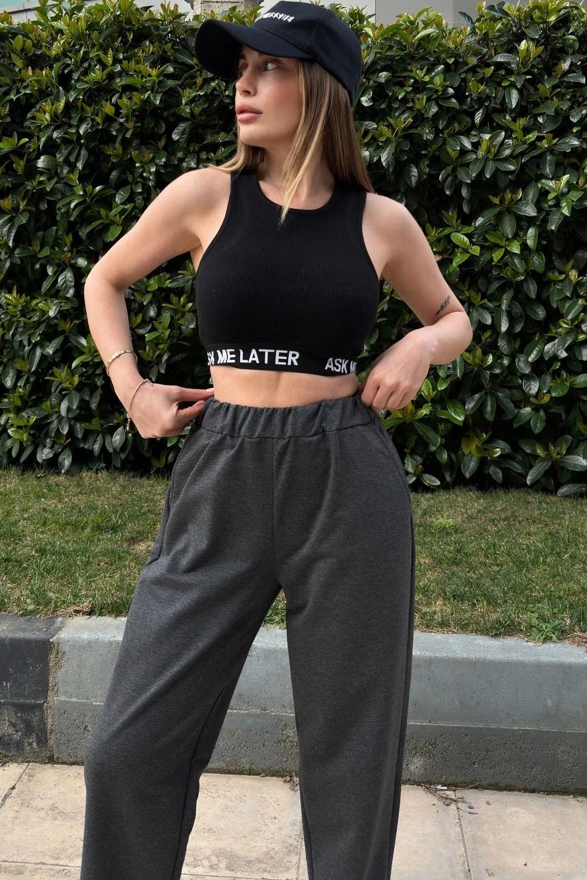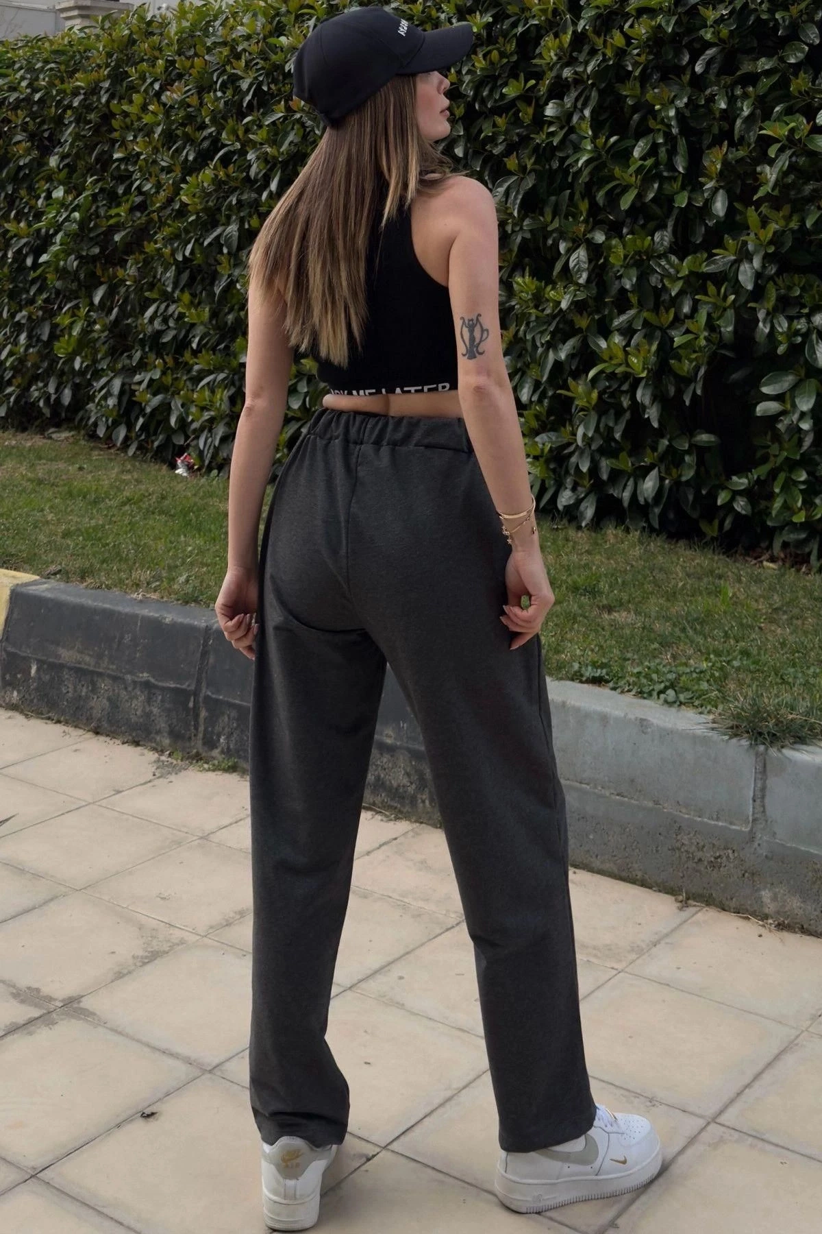 Kadın Antrasit Beli Lastikli, Cepli, Paçası Pliseli, Salaş Pantolon