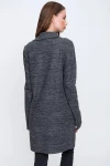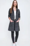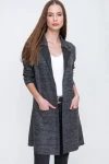 Kadın Antrasit Dokulu Çift Cep Uzun Ceket Hırka Uzun Kol - Tesettüre Uygun