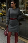 Kadın Antrasit Uzun Kollu Triko Mini Elbise