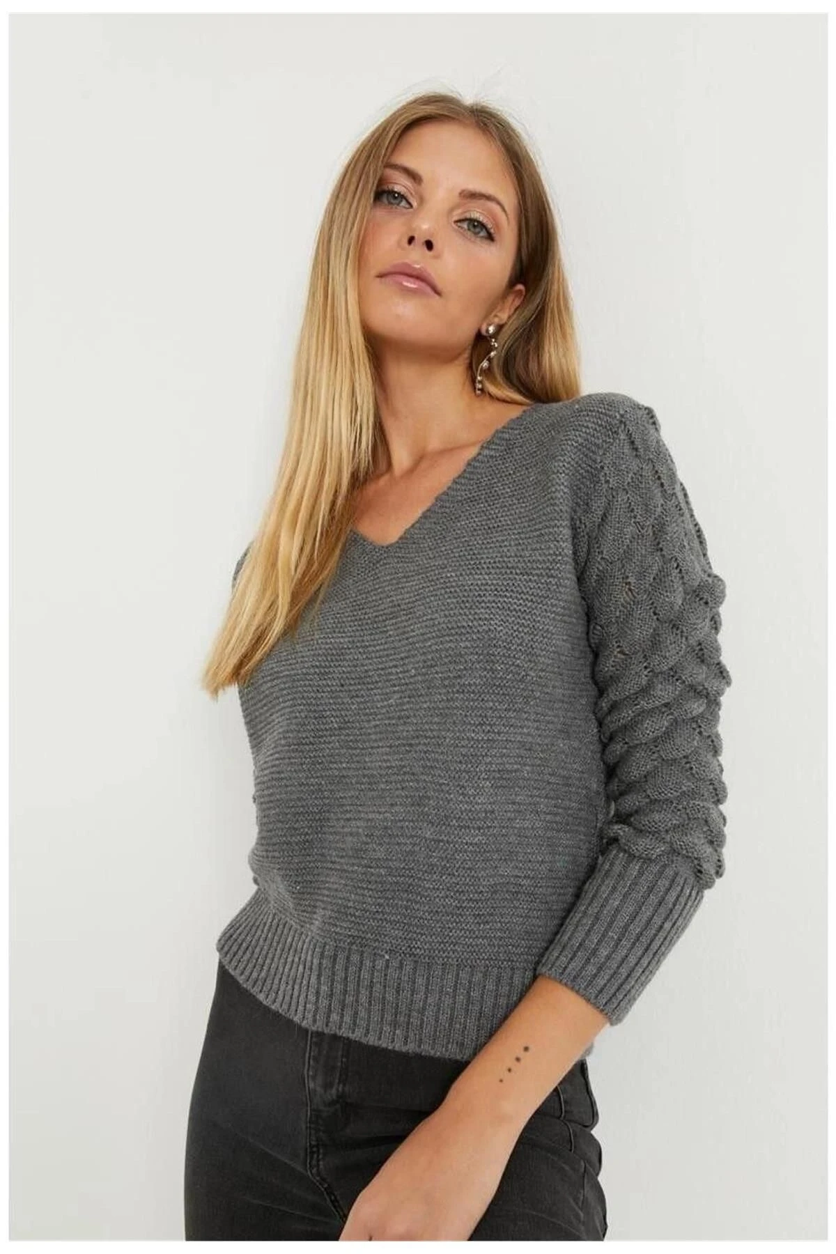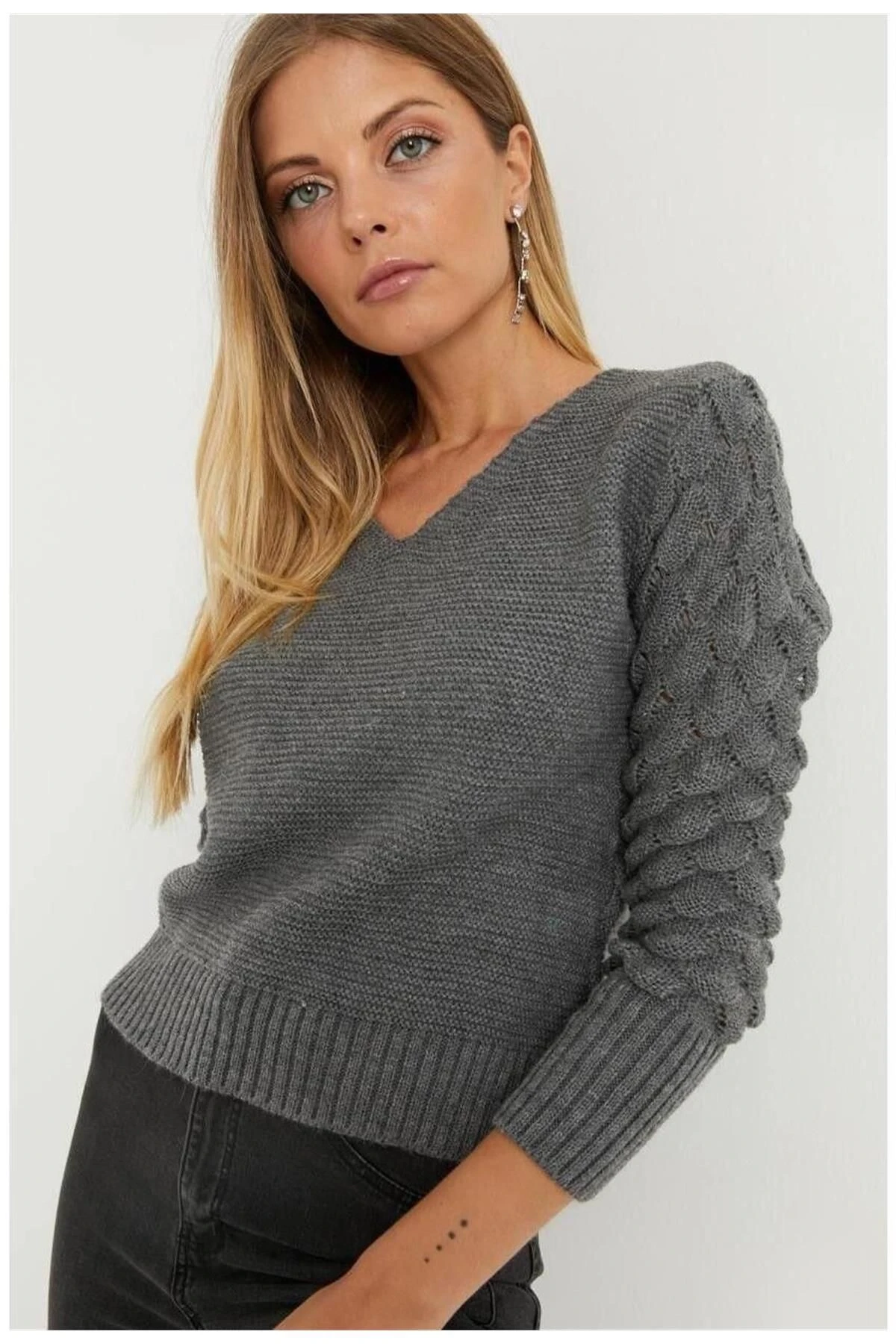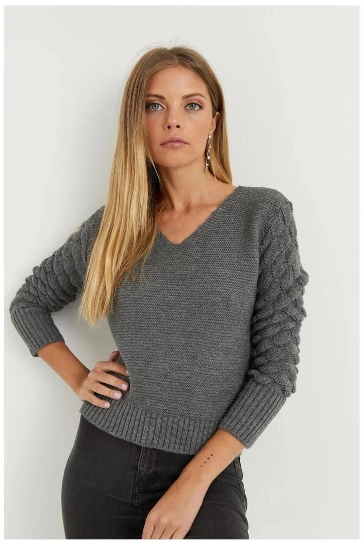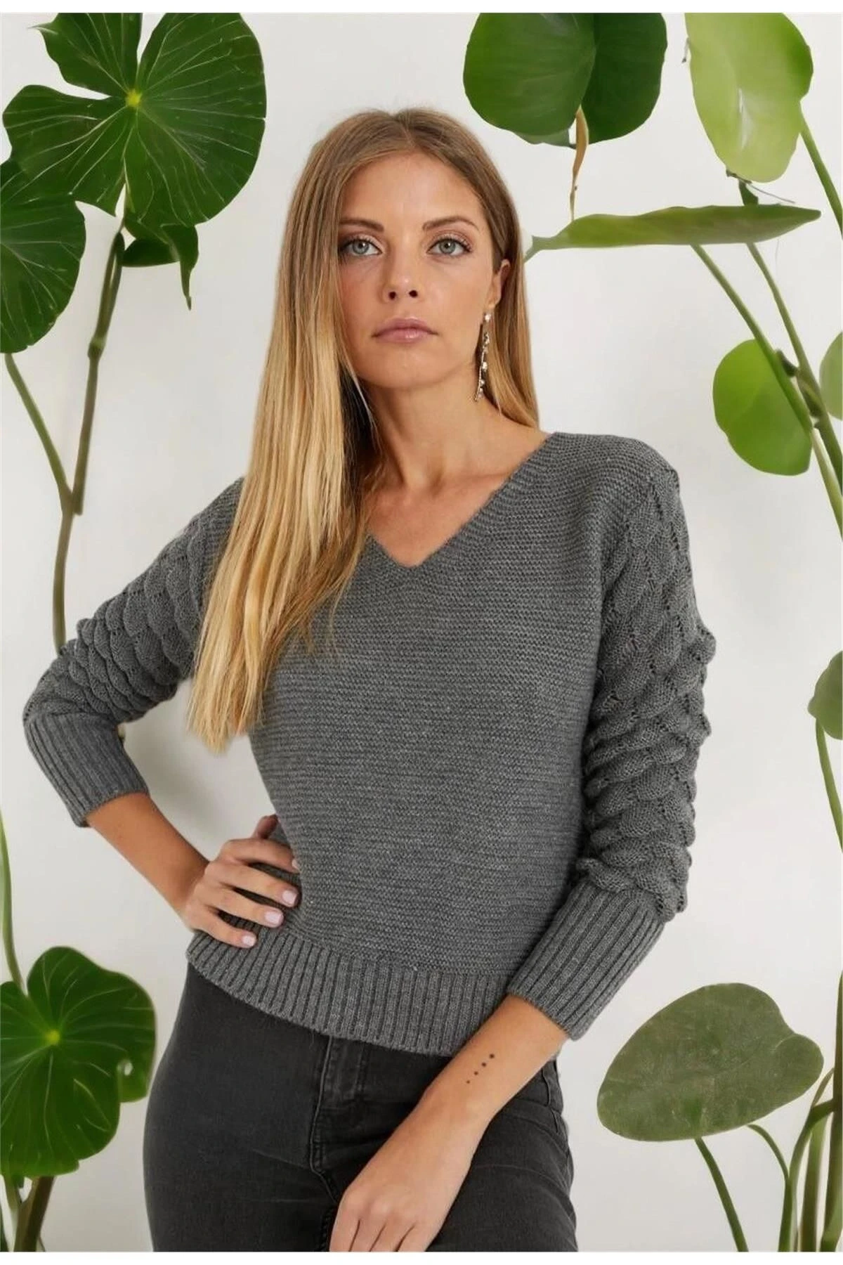Bu triko bluz, antrasit renginde şık bir seçenektir.; V yaka ve uzun kollu detaylarıyla tasarlanmıştır.; Yumuşak dokulu triko kumaşı, konforlu bir giyim deneyimi sunar.; Düz kesim ve standart boyuyla her vücut tipine uyum sağlar.; Bluzun kumaş içeriği %100 akrilikten oluşur.; Bu malzeme, dayanıklı ve hafif yapısıyla öne çıkar.; Akrilik, iyi bir ısı yalıtımı sağlar ve soğuk havalarda sizi sıcak tutar.; Aynı zamanda kolay bakım özellikleri sayesinde uzun ömürlüdür.; Antrasit renk, klasik ve şık bir seçenektir.; Bu nötr renk, çeşitli kombinlerle uyumlu olup, herhangi bir mevsimde giyilebilir.; Bluzun V yaka tasarımı, feminen bir hava katarken, uzun kollu detayları da sıcaklık sağlar.; Düz kesimli bluz, modern bir tarzı temsil eder.; Rahat ve şık bir görünüm sunarken, vücut hatlarınıza hoş bir şekilde oturur.; Standart boyu, herhangi bir vücut tipine uygun olduğu gibi, kolayca pantolon, etek veya şort gibi alt parçalarla kombinlenebilir.; Bu antrasit renkli V yaka uzun kol triko bluz, hem günlük hayatta hem de özel etkinliklerde mükemmel bir tercihtir.; Yumuşak dokulu triko kumaşı ve şık tasarımıyla tarzınızı tamamlarken, sizi sıcak tutar ve rahat bir giyim deneyimi sunar.