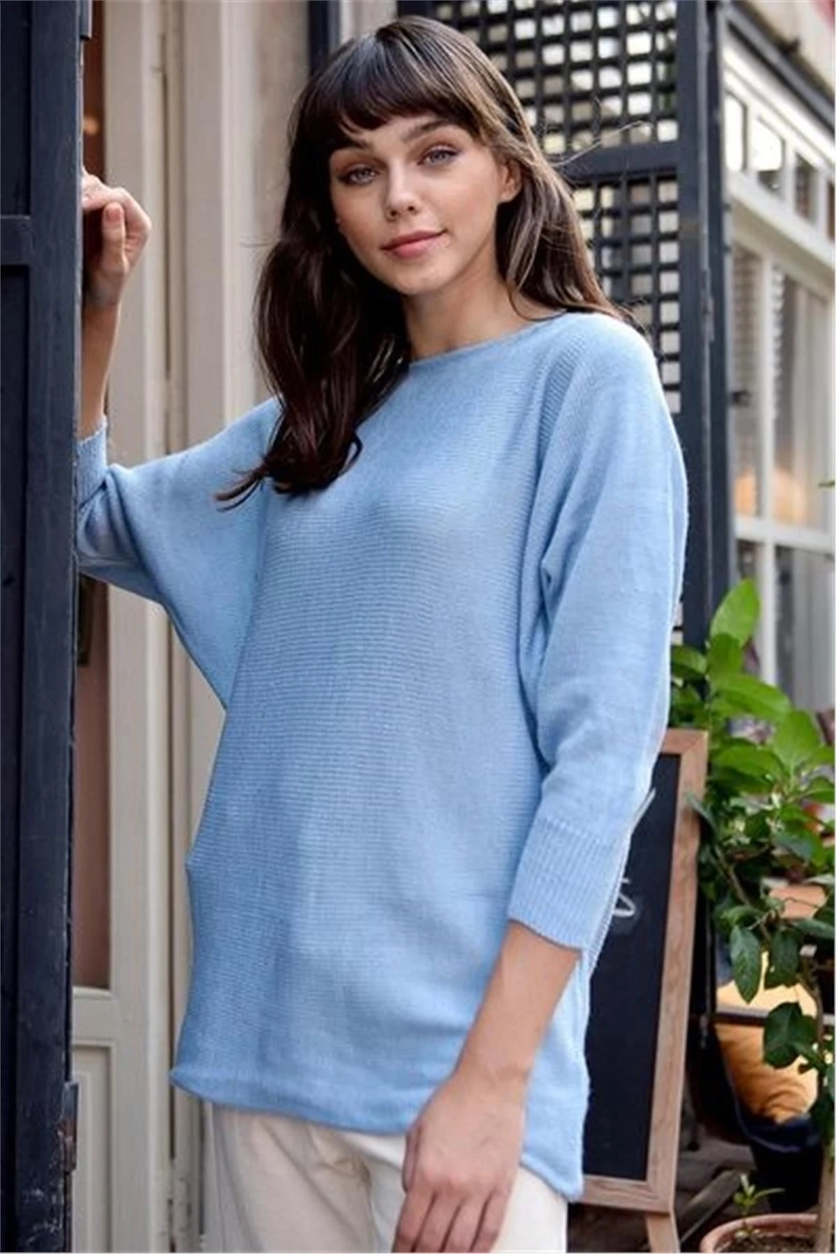 Bu Bebe Mavisi Renk Kayık Yaka Uzun Kol Basic Oversize Triko, Maksi Boy kazak, şıklığı ve rahatlığı bir araya getiren bir parçadır.; Yumuşak ve kaliteli kumaşıyla üretilmiştir.; Kumaş içeriği %70 akrilik ve %30 yünden oluşur, bu da kazakta birinci sınıf bir konfor sağlar.; Bebe mavisi renk, klasik bir tarza modern bir dokunuş katar.; Bu renk, her mevsim ve her durum için mükemmeldir ve kombinlemesi kolaydır.; Kayık yaka tasarımı, zarif ve şık bir görünüm sunar.; Bu detay, boynunuzu sıcak tutarken aynı zamanda stilinizi ön plana çıkarır.; Uzun kollu tasarımı, soğuk havalarda ek bir koruma sağlar ve kollarda rahat bir oturuş sağlar.; Basic oversize kesimi, her vücut şekline uyum sağlayan geniş bir kesim sunar.; Bu kazak, gevşek ve rahat bir görünüm için maksi boyda tasarlanmıştır.; İster kot pantolonlarla, ister eteklerle kombinleyin, bu oversize triko her zaman mükemmel bir şekilde oturur.; Kumaşın %70 akrilik ve %30 yün karışımı, kazakta dayanıklılık ve yumuşaklık sağlar.; Akrilik, kolay bakım ve uzun ömür sunarken, yün doğal bir yalıtım ve sıcaklık sağlar.; Bu kombinasyon, ürünün uzun süre dayanmasını ve sürekli kullanımda bile şeklini korumasını sağlar.; Bu Bebe Mavisi Renk Kayık Yaka Uzun Kol Basic Oversize Triko, mükemmel bir stil ve konfor kombinasyonudur.; Kendinizi şımartmak ve gardırobunuza yeni bir parça eklemek için ideal bir seçenektir.; Şık, rahat ve kaliteli bir kazağa sahip olmanın tadını çıkarın!