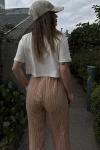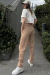 Kadın Bej Çizgili, Beli Lastikli, Cepli, Salaş Spor Pantolon