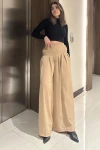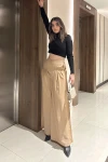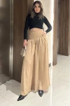 Kadın bej Fermuar Kapamalı, Cepli, Pileli Bol Paça Etek Pantolon