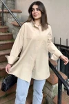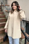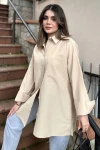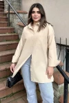 Kadın bej Terikoton Kumaş, Yırtmaçlı, Rahat Uzun Gömlek