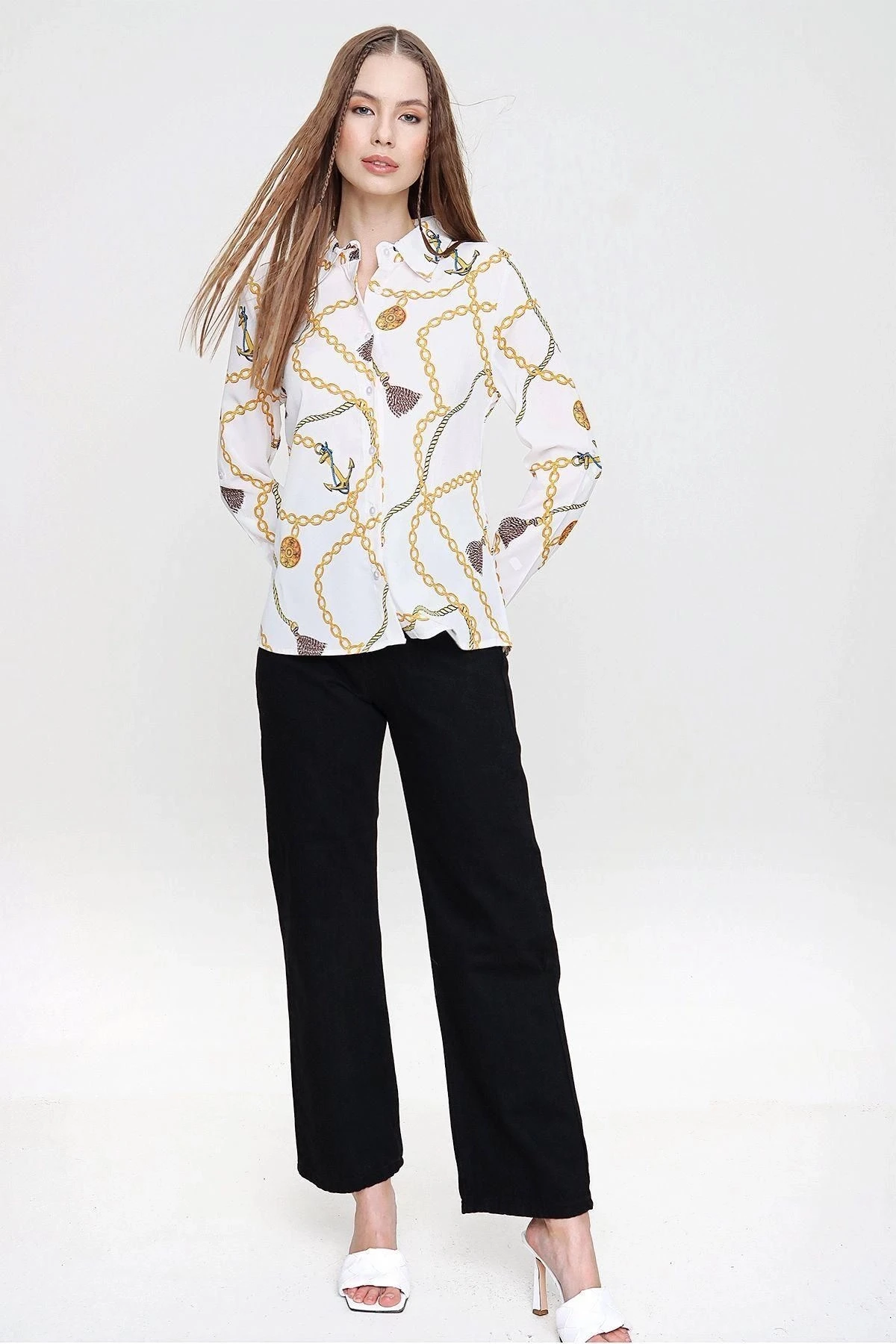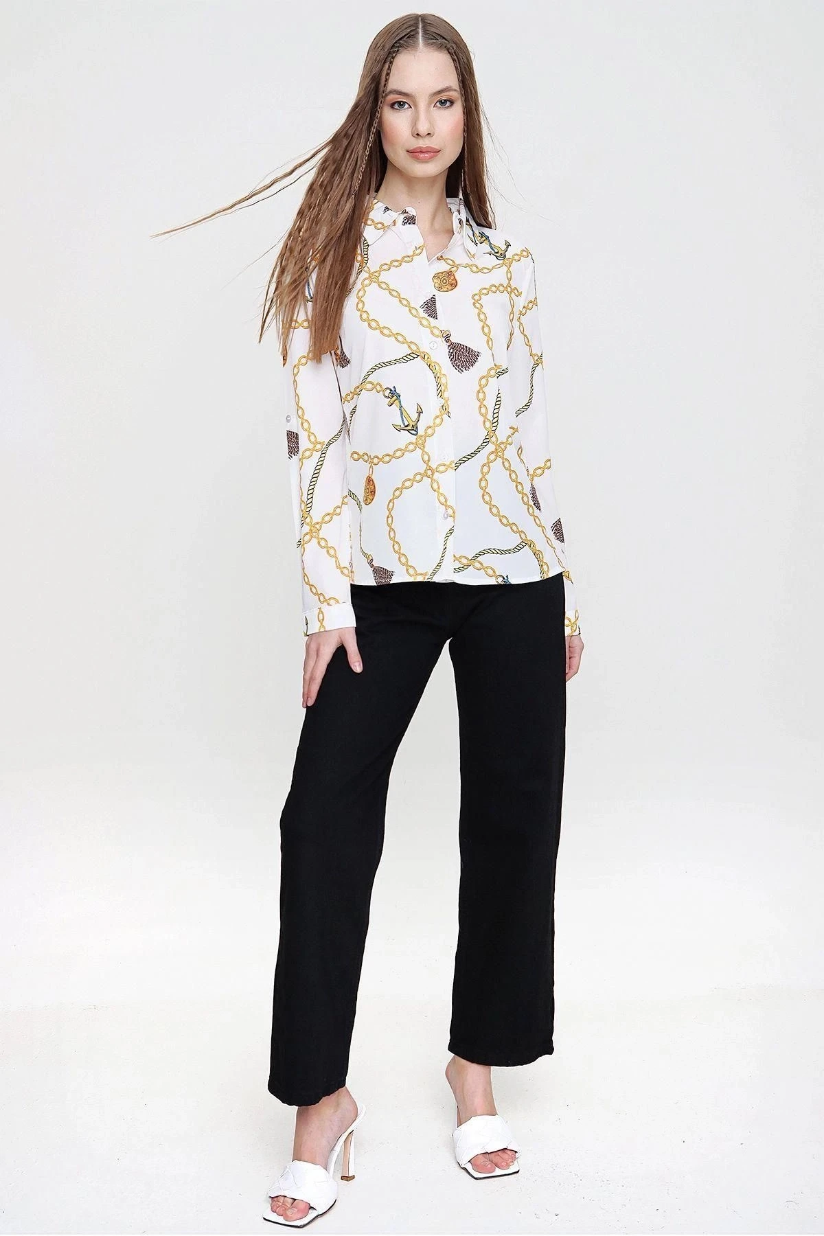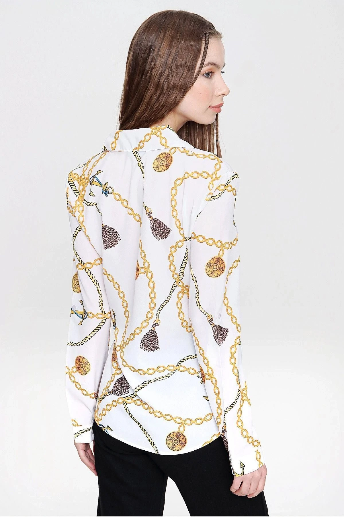 Bu Bej Renk Zincir Desenli Uzun Kol Gömlek, şık ve modern bir görünüm sunan yüksek kaliteli bir üründür.; Regular kesimi ve standart boyu sayesinde her bedene uyum sağlar.; Gömleğin kumaşı %100 polyesterden oluşur, bu da ona dayanıklılık ve uzun ömür kazandırır.; Polyester malzeme aynı zamanda kırışıklıklara karşı dirençlidir, böylece her zaman düzgün ve bakımlı bir görünüm sunar.; Gömleğin bej rengi, sakin ve zarif bir tarzı yansıtır.; Bej, herhangi bir kıyafetle kolayca kombinlenebilen çok yönlü bir renktir.; Bu gömlekle herhangi bir pantolon, etek veya şortla rahatlıkla uyum sağlayabilirsiniz.; Zincir deseni, gömleğe modern bir dokunuş katar.; Zarif ve göz alıcı detaylarla bezeli olan bu desen, gömleğin şıklığını artırır ve farklı bir tarz yaratır.; Gömleğin tasarımı, özgün ve dikkat çekicidir, bu da sizi diğerlerinden ayırmanızı sağlar.; Bu Bej Renk Zincir Desenli Uzun Kol Gömlek, stil sahibi bir görünüm elde etmek isteyenler için mükemmel bir seçenektir.; Dayanıklı kumaşı, çarpıcı rengi ve modern tasarımıyla gardırobunuza şıklık katacaktır.; Herhangi bir mekanda, özel etkinliklerde veya günlük hayatta giyebilirsiniz.