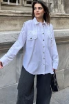 Kadın Beyaz Apolet Ve Zımba Detaylı, Salaş Kesim, Terletmez, Poplin Gömlek