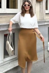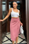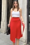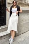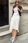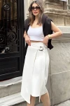 Kadın Beyaz Asimetrik Kesim, Toka Ve Yandan Bağlama Detaylı, Scuba Etek