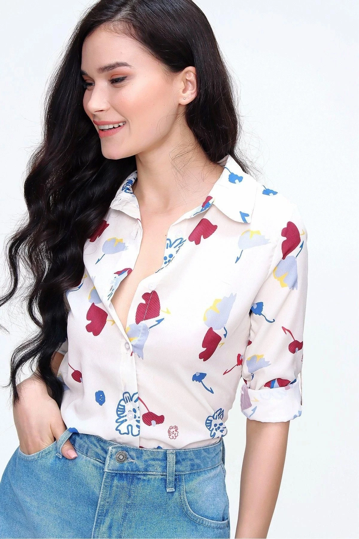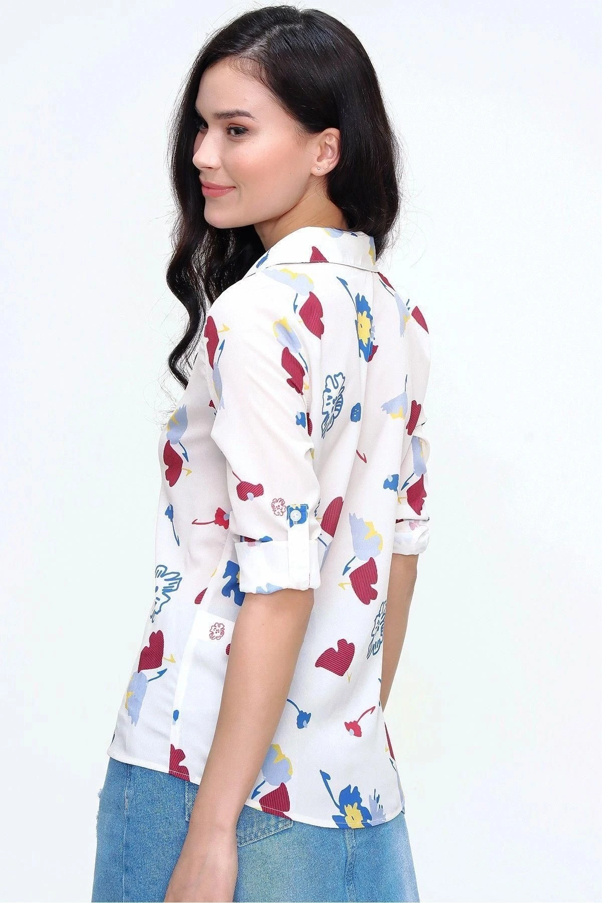 Sizi büyüleyici bir şekilde öne çıkaran beyaz renkli çiçek desenli klasik yaka uzun kollu gömleğe davet ediyoruz.; Bu gömlek, muhteşem bir tarz ve zarafet sunarken, klasik yaka tasarımıyla da öne çıkıyor.; Düz kesimi ve standart boyu sayesinde, her vücut tipine mükemmel bir uyum sağlar.; Sade ve şık bir görünüm sunan bu gömlek, herhangi bir mekanda veya etkinlikte kendinizi özgüvenle ifade etmenizi sağlar.; Kumaş içeriği %100 polyesterden oluşur, bu da gömleğin yumuşak, hafif ve dayanıklı olmasını sağlar.; Polyester kumaş, uzun süreli kullanımlarda bile şeklini koruyarak gömleğin uzun ömürlü olmasını sağlar.; Ayrıca, bu malzeme kolayca kırışmaz ve kolay bakım sağlar, böylece her zaman temiz ve düzenli bir görünüm elde edebilirsiniz.; Beyaz rengin sadeliği ve şıklığı, çiçek desenlerinin romantik dokunuşuyla birleştiğinde, bu gömlek gerçekten göz alıcı bir görüntü sunar.; Çiçek desenleri, doğanın canlılığını ve zarafetini yansıtırken, beyaz renk ise saflık ve zarif bir stil ifade eder.; Bu kombinasyon, gömleği hem günlük kullanımda hem de özel davetlerde şık bir seçenek haline getirir.; Bu gömlek, her kadının gardırobunda olması gereken bir parça olarak öne çıkıyor.; Şık detaylar ve kaliteli kumaşın birleşimiyle, bu gömlek size her zaman şıklık ve zarafet sunacak.; Klasik yaka uzun kollu gömlek arayanlar için ideal bir seçenek olan bu ürün, tarzınızı tamamlamak ve her ortamda dikkat çekmek için mükemmel bir seçenektir.
