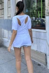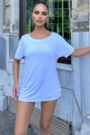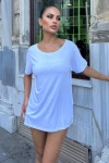 Kadın Beyaz Geniş Yaka, Kısa Kollu, Sırtı Dekolteli, Dökümlü Kumaş, Salaş Bluz