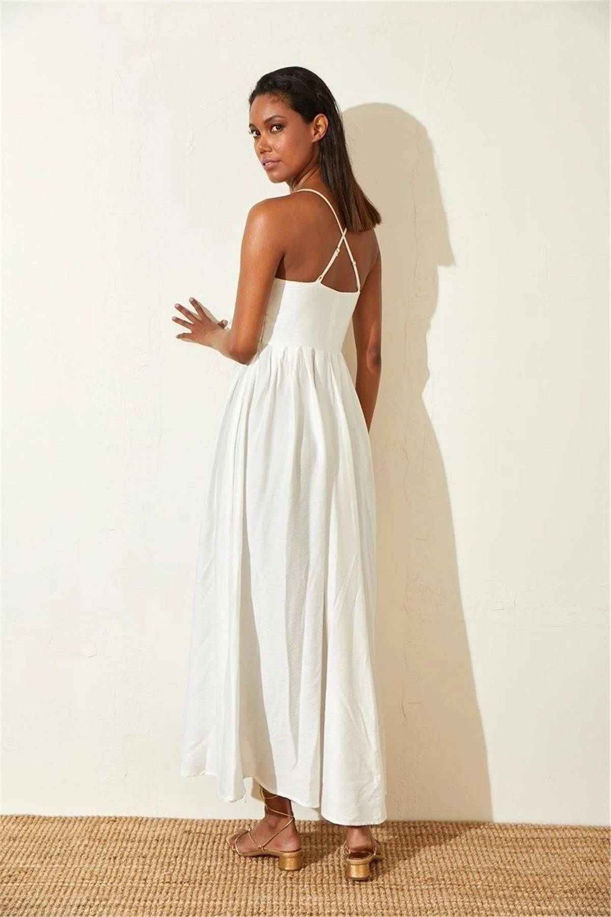 Bu beyaz renkli, V yaka ve askılı tasarıma sahip rahat kesimli elbise, günlük kullanım için mükemmel bir seçenektir. ; Maksi boyuyla uzun bir görünüm sunarken, aynı zamanda rahatlık sağlar. ; Elbisenin kumaşı, %60 polyester ve %40 pamuktan oluşur, bu da yumuşaklık ve dayanıklılık sunar. ; Beyaz renk, elbisenin şıklığını vurgulayan bir seçimdir ve herhangi bir mekanda ve herhangi bir etkinlikte mükemmel bir uyum sağlar. ; V yaka tasarımı, zarif bir görünüm yaratırken, askılı detaylar feminen bir dokunuş katar. ; Bu elbise, bağcık detayıyla da dikkat çeker. ; Bağcık, belinizi vurgulayarak bedeninizi tanımlamanıza olanak tanır ve size daha ince bir siluet sağlar. ; Rahat kesimi sayesinde, gün boyunca hareket özgürlüğünüzü kısıtlamadan konforlu bir şekilde giyebilirsiniz. ; Bu elbise, günlük kullanım için mükemmel bir seçenek olmasının yanı sıra özel etkinliklerde de şık bir tercihtir. ; Yüksek kaliteli kumaşı ve dikkatlice tasarlanmış detaylarıyla, hem rahatlığı hem de şıklığı bir araya getirir. ; Bu beyaz renkli, V yaka askılı elbise, gardırobunuzun vazgeçilmez bir parçası olmaya adaydır. ; Yüksek kaliteye sahip kumaşı, şık tasarımı ve rahat kesimiyle stilinizi tamamlayacak ve her seferinde özgüveninizi yükseltecektir.;