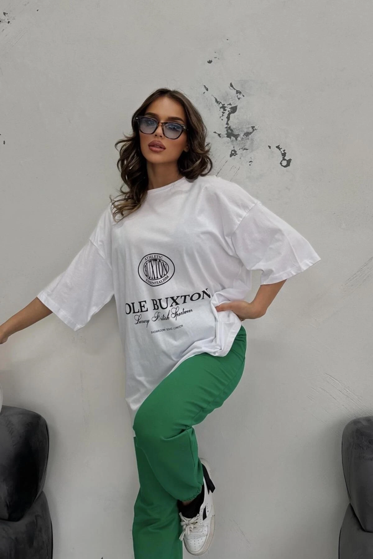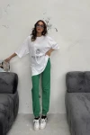 Kadın Beyaz Yeşil Baskılı Lycra Oversize İkili Takım