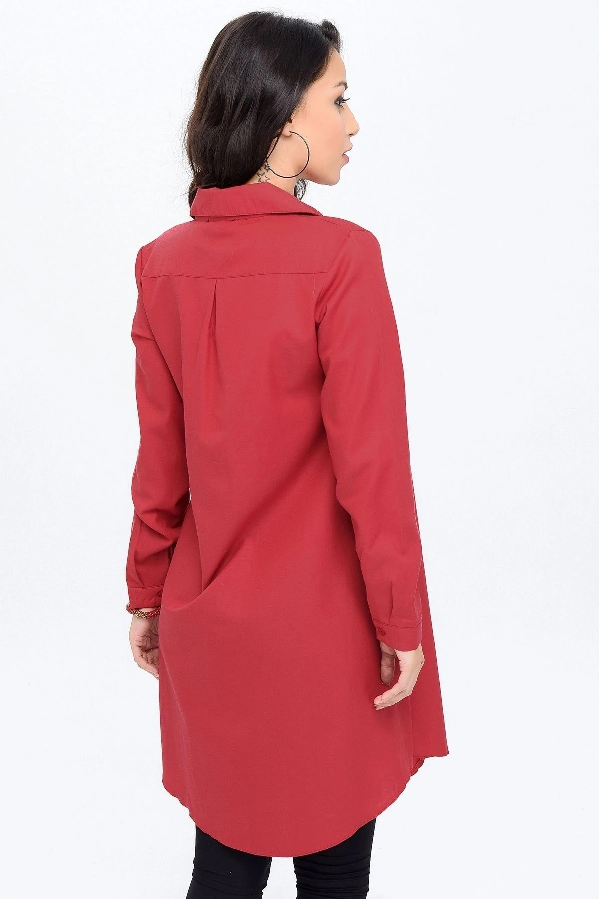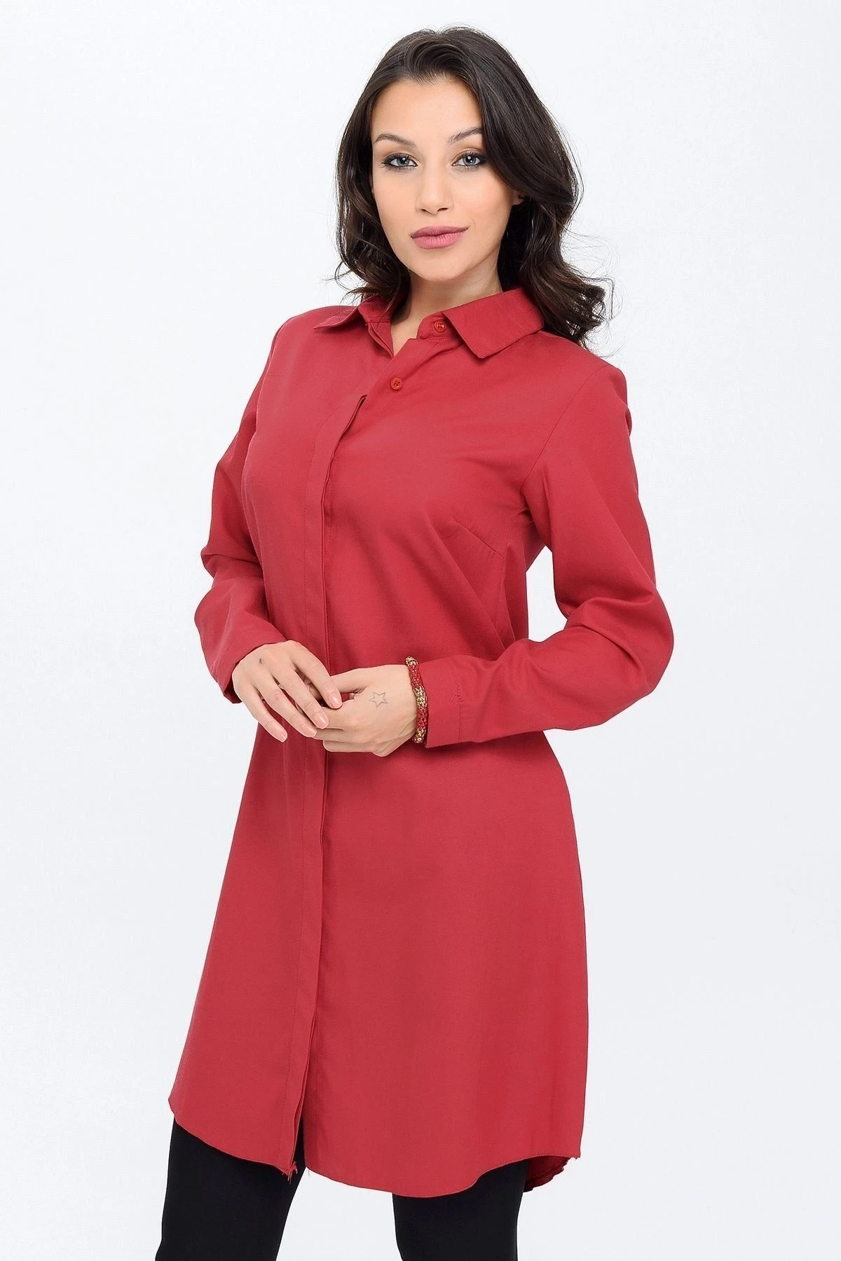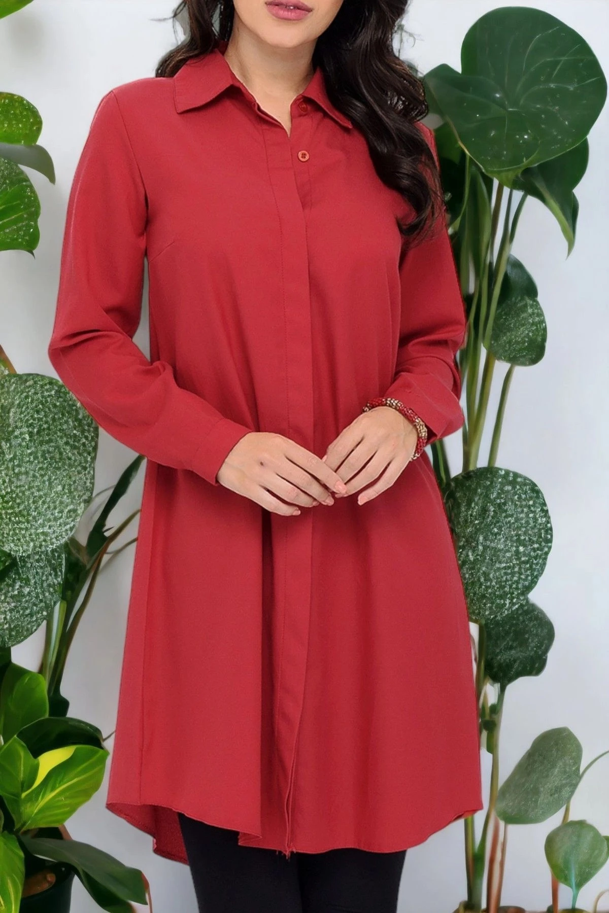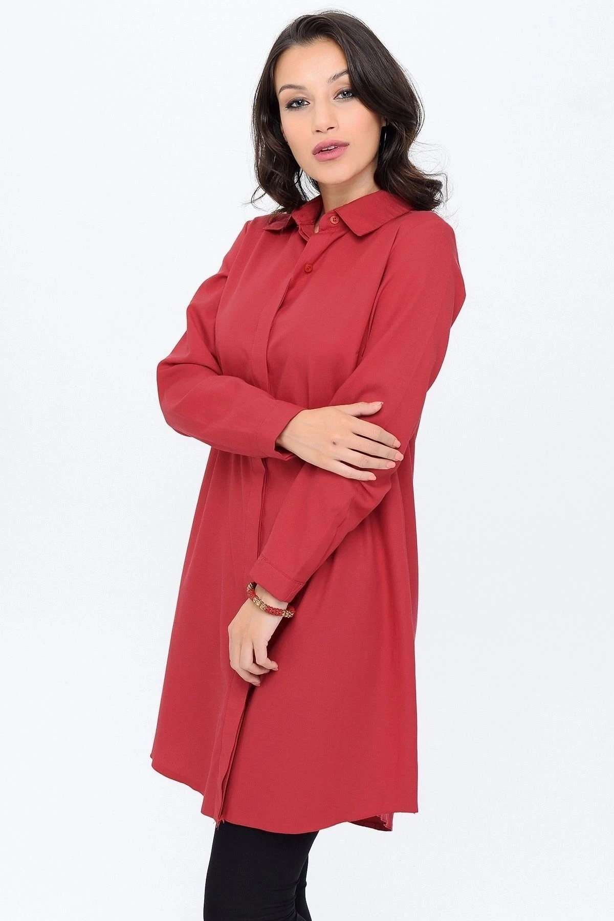 Bu klasik yaka, uzun kollu, basic kesimli midi boy gömlek, zarif bir tasarıma ve kaliteli kumaşa sahiptir. ; Kumaş içeriği %60 polyester ve %40 pamuktur, bu da hem dayanıklılık sağlar hem de rahat bir giyim deneyimi sunar. ; Gömleğin renk kalıbı, bordo renk seçeneğiyle şıklık katmaktadır. ; Bordo, her mevsimde güzel bir seçenek olup, her türlü kombinasyonla uyum sağlar. ; Gömleğin klasik yaka detayı, zamansız bir tarz sunarken, uzun kollu tasarımı da ekstra koruma ve sıcaklık sağlar. ; Bu gömlek, basic ve regular kesimiyle her vücut tipine uyum sağlayacak şekilde tasarlanmıştır. ; Rahat bir giyim deneyimi sunarken, zarif bir görünüm elde etmenizi sağlar. ; Midi boyu, tesettürlü hanımlar için uygun bir uzunlukta olup, şıklıkla sadeliği birleştirir. ; Bu gömlek, çeşitli durumlar için ideal bir seçenektir. ; İş ortamında profesyonel bir tarz oluşturmak için veya günlük yaşamda şık ve rahat bir görünüm elde etmek için kullanabilirsiniz. ; Yüksek kaliteli kumaşı, uzun süre dayanıklılık ve renk kalitesi sunar. ; Bu ürün, hem kaliteli tasarımı hem de tesettüre uygun olmasıyla öne çıkar. ; Şıklığı ve rahatlığı bir arada sunan bu gömlek, gardırobunuzun vazgeçilmez bir parçası olacak. ; Her daim şık ve tarz sahibi görünmek isteyenler için mükemmel bir seçimdir.;