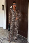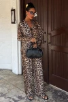 Kadın Camel Uzun Kol Animal Desen Dokuma Polo Takım