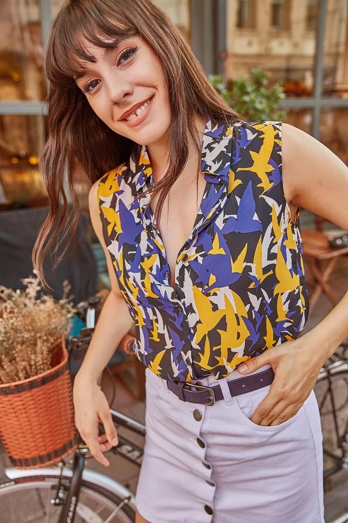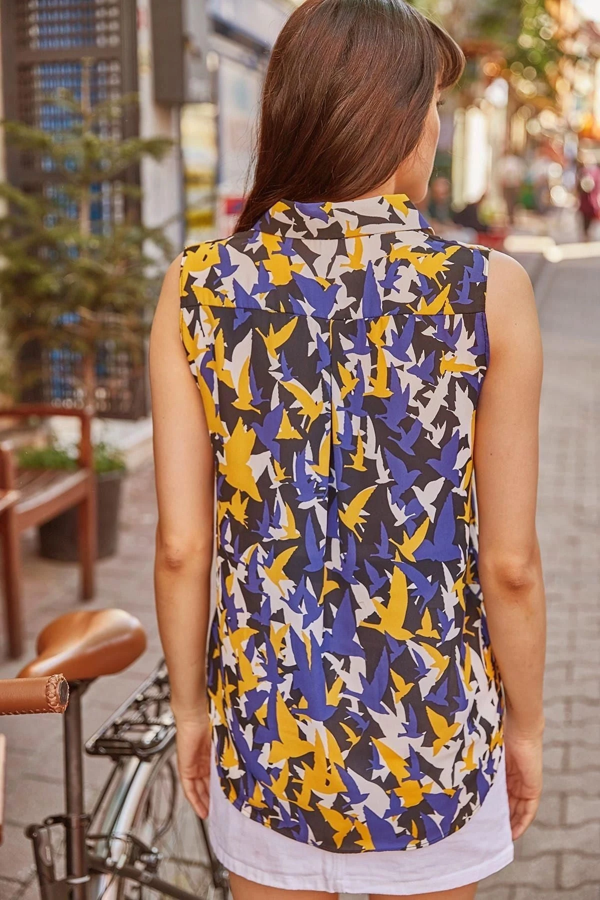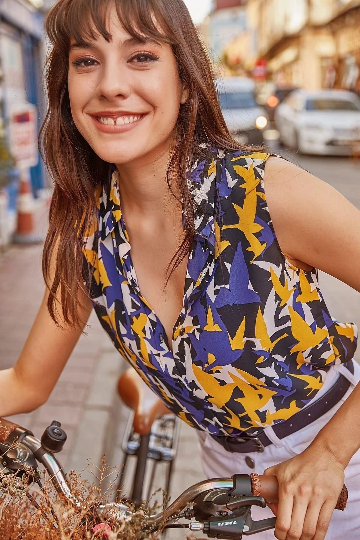 Kadın Çok Renkli Desenli Klasik Yaka Uzun Kol Regular Kesim Standart Boy Gömlek Bluz
