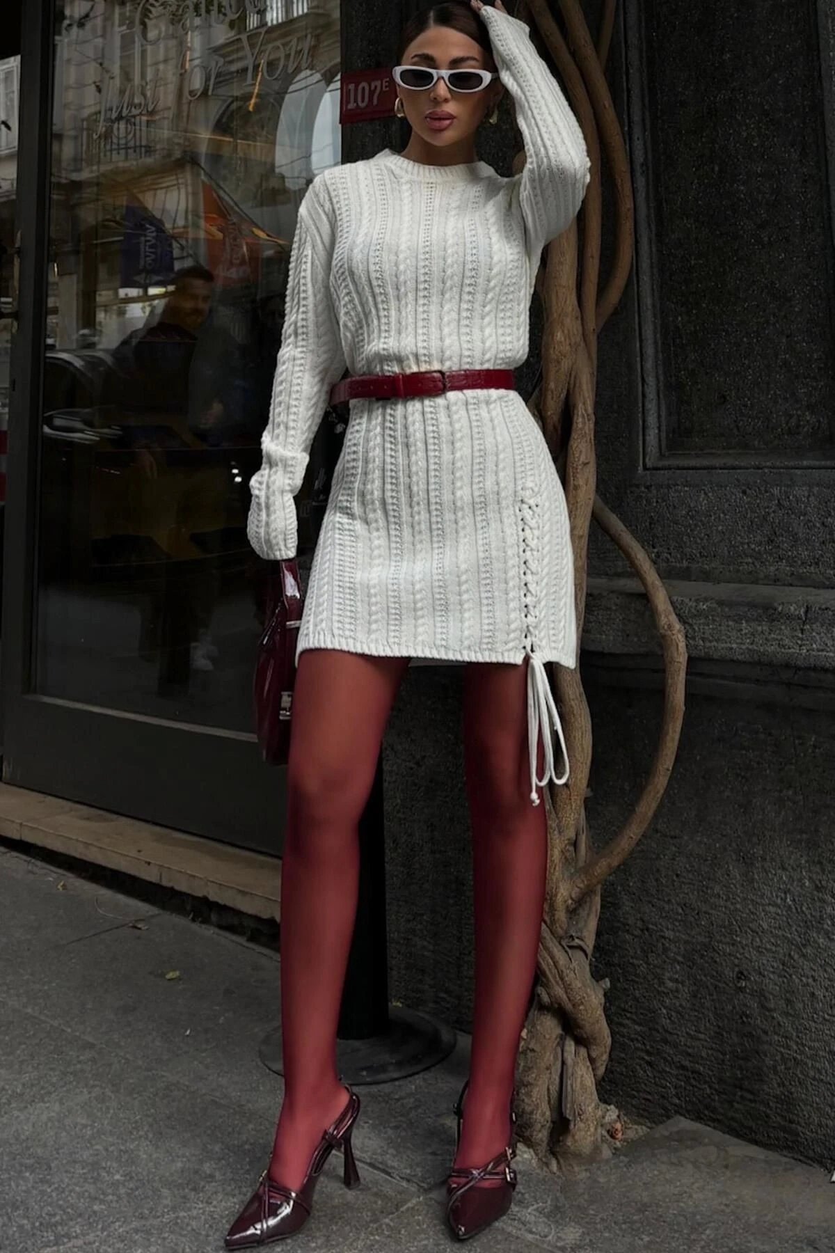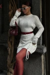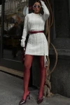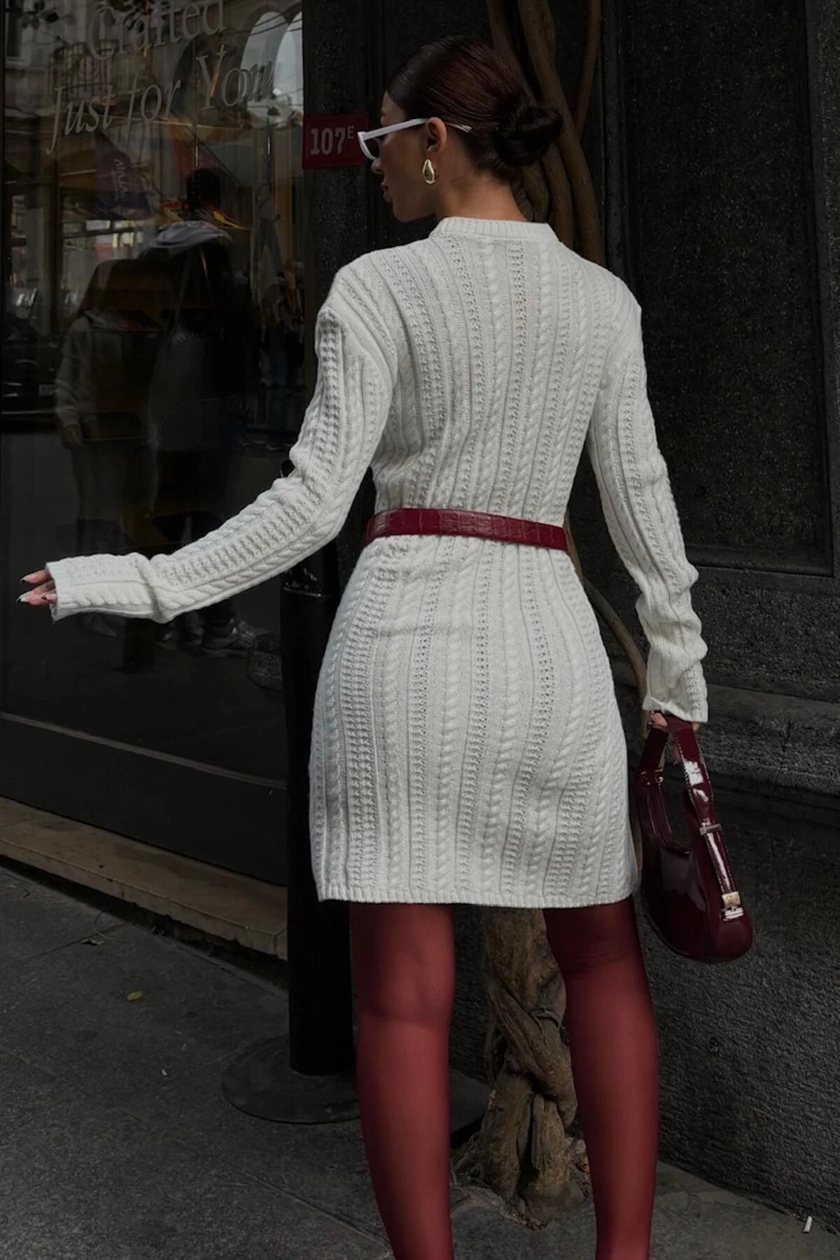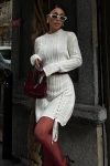 Kadın Ekru Akrilik Triko Uzun Kol Mini Elbise
