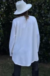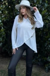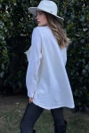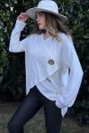 Kadın Ekru Asimetrik Kesim, Düğmeli, Salaş Hırka Bluz