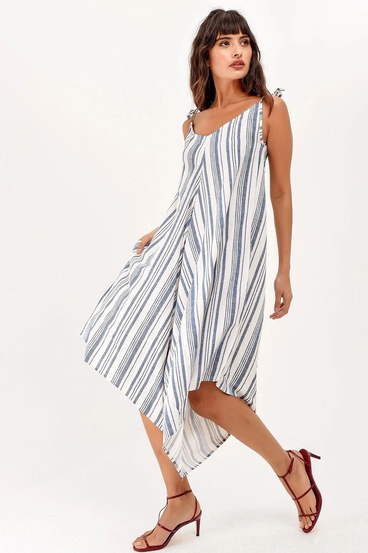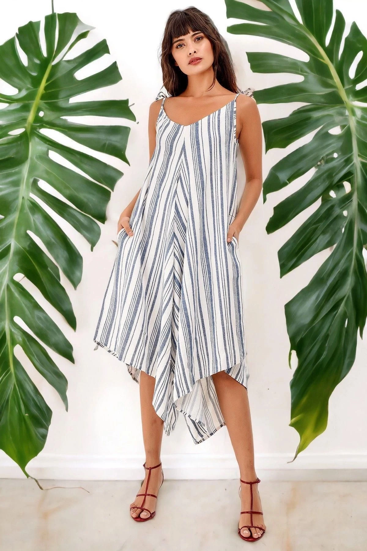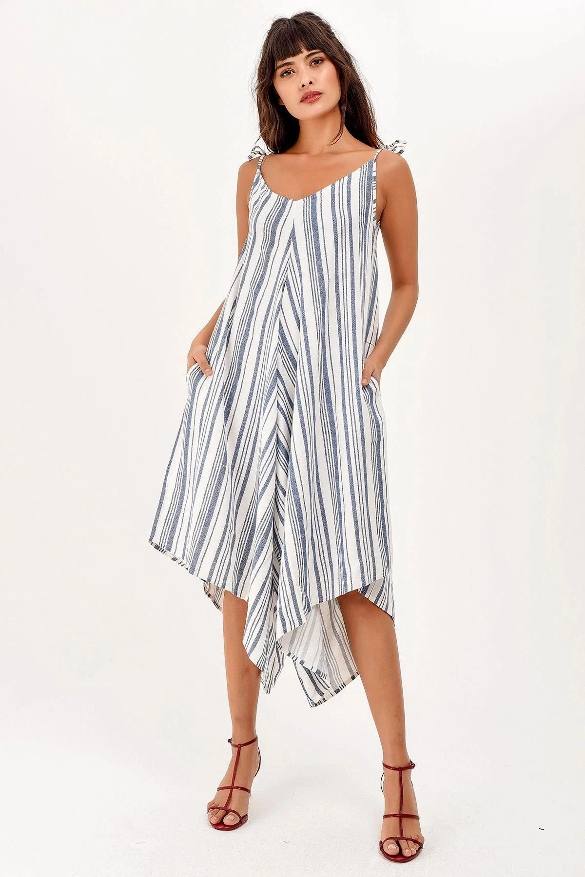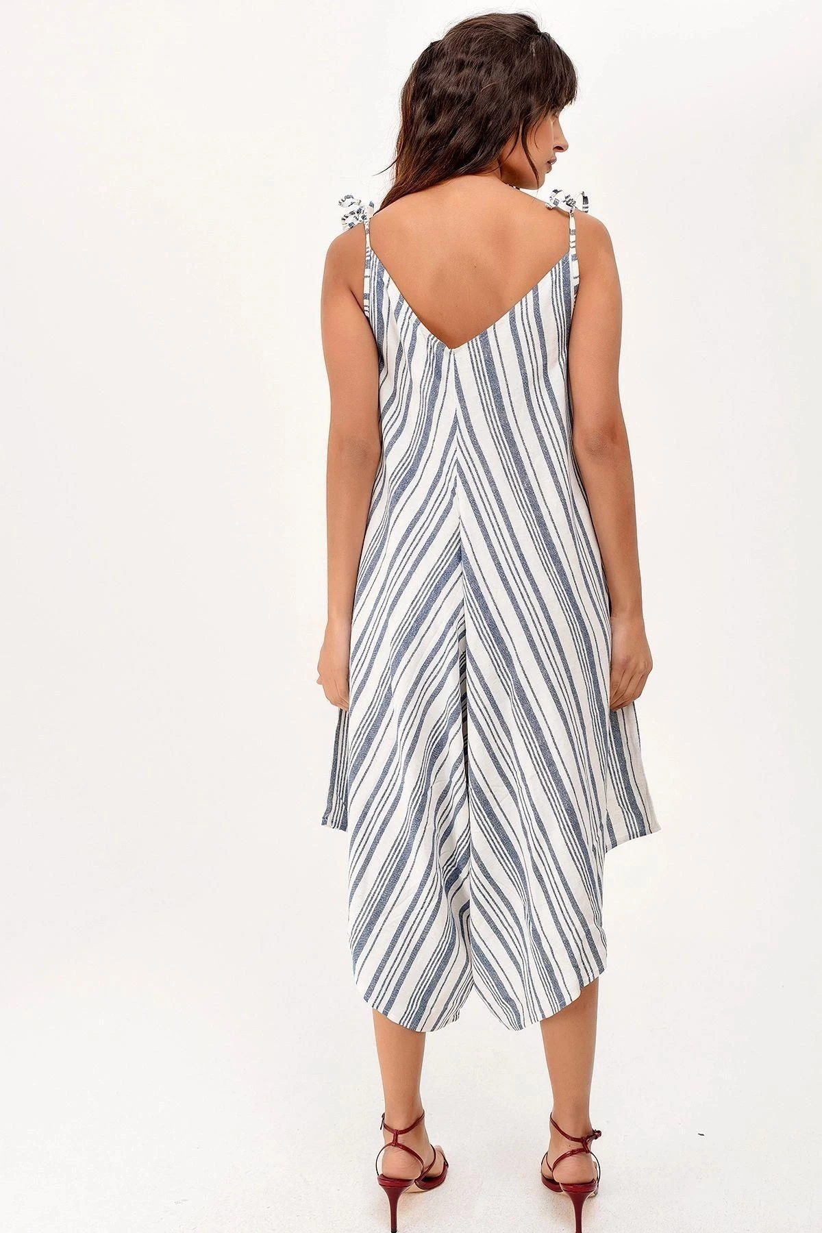 Kadın Ekru Askılı Asimetrik Tulum Elbise - Oversize Kesim ve Midi Boy Diz üstü