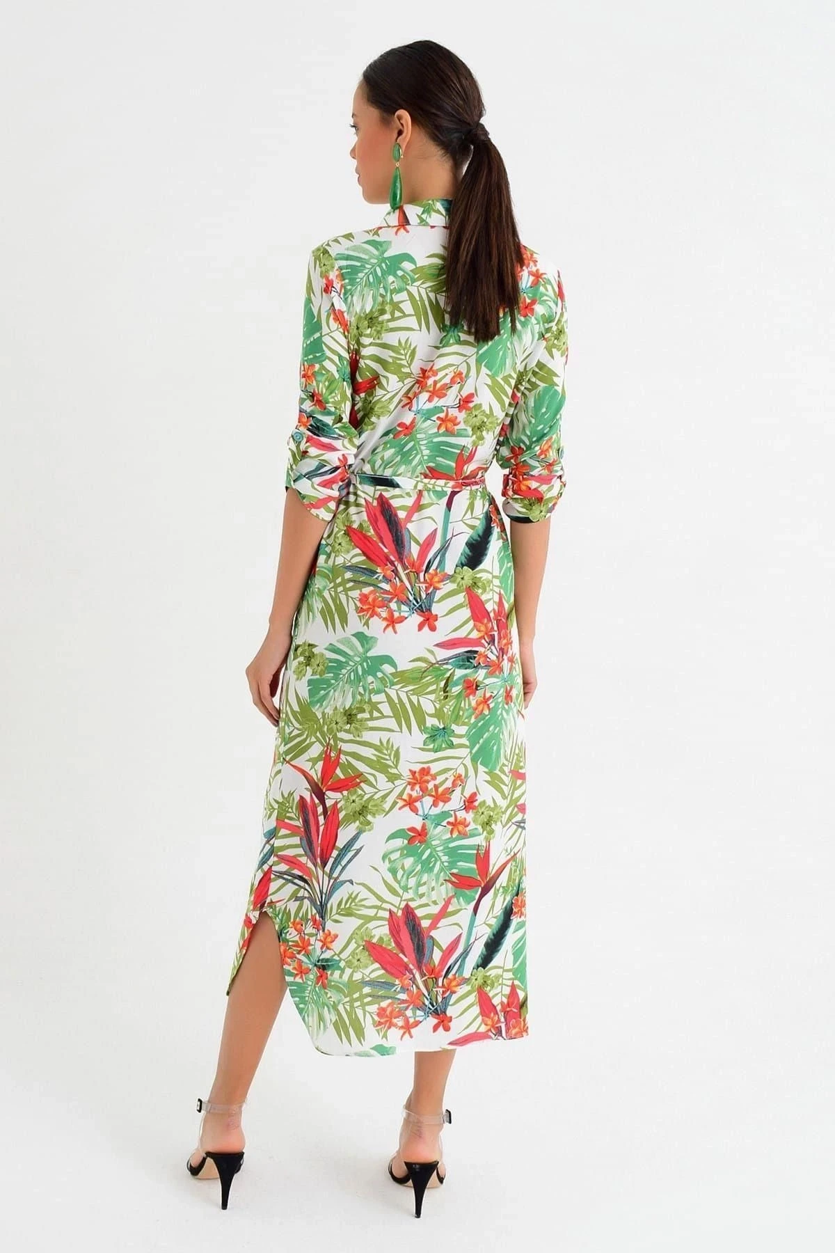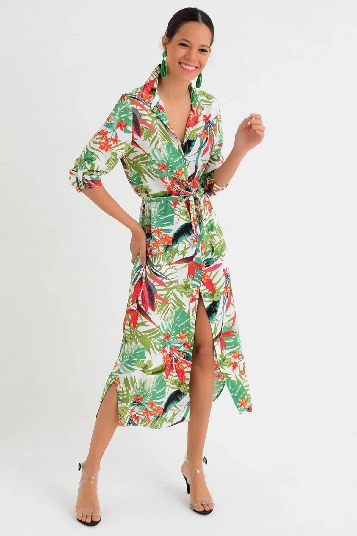 Bu çarpıcı ve şık ekru renkli klasik yaka elbise, gardırobunuza mükemmel bir katkı sağlayacak.; Uzun kollu tasarımıyla, her mevsimde rahatlıkla giyebileceğiniz bir parça haline geliyor.; Çiçek desenleriyle süslenmiş bu elbise, zarif ve şık bir görünüm sunuyor.; Yırtmaç detayları, elbisenin hareket özgürlüğünü artırırken, aynı zamanda stilinize de modern bir dokunuş katıyor.; Regular kesimli olan bu elbise, vücut hatlarınıza hoş bir şekilde oturacak şekilde tasarlanmıştır.; Maksi boyu, bacaklarınızı zarif bir şekilde vurgularken, size zarafet ve şıklık katacaktır.; Bu elbisenin kumaş içeriği %100 polyesterdir, bu da ona dayanıklı ve uzun ömürlü bir yapı sağlar.; Polyester kumaş, kolay bakım gerektirmez ve ütüleme ihtiyacını minimuma indirir.; Ekru renk, klasik bir renk olup her türlü kombinasyon için mükemmel bir temel oluşturur.; Bu elbise, zarif bir tarzı benimseyenler için ideal bir seçimdir.; Hem günlük giyimde hem de özel etkinliklerde şıklığınızı ön plana çıkaracak ve sizi her ortamda öne çıkaracak.; Bu ekru renkli, çiçek desenli, yırtmaçlı, regular kesimli, maksi boy elbise, günlük şıklığınızı tamamlamak için mükemmel bir seçenektir.; Rahatlığı ve şıklığı bir araya getiren bu elbise, gardırobunuzun favori parçalarından biri olacak.