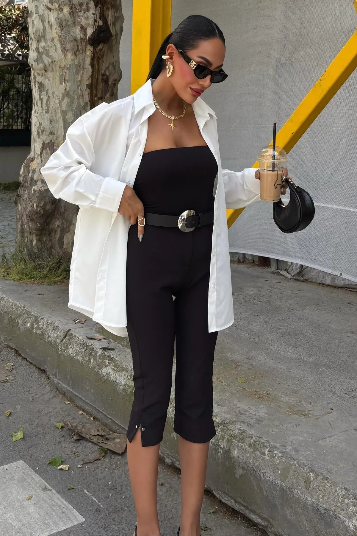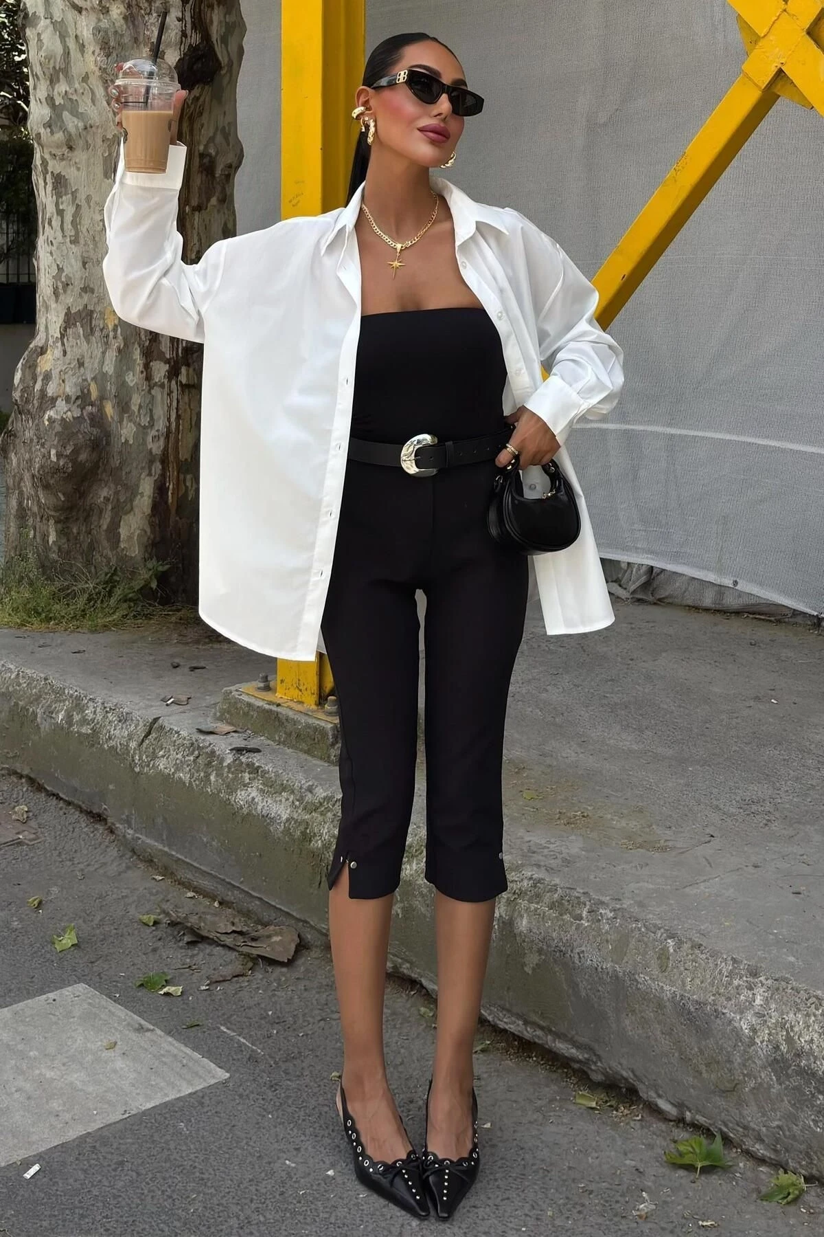 Kadın Ekru Polyester Oversize Uzun Poplin Gömlek