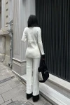 Kadın Ekru Siyah Triko Uzun Kol Polo Yaka Takım