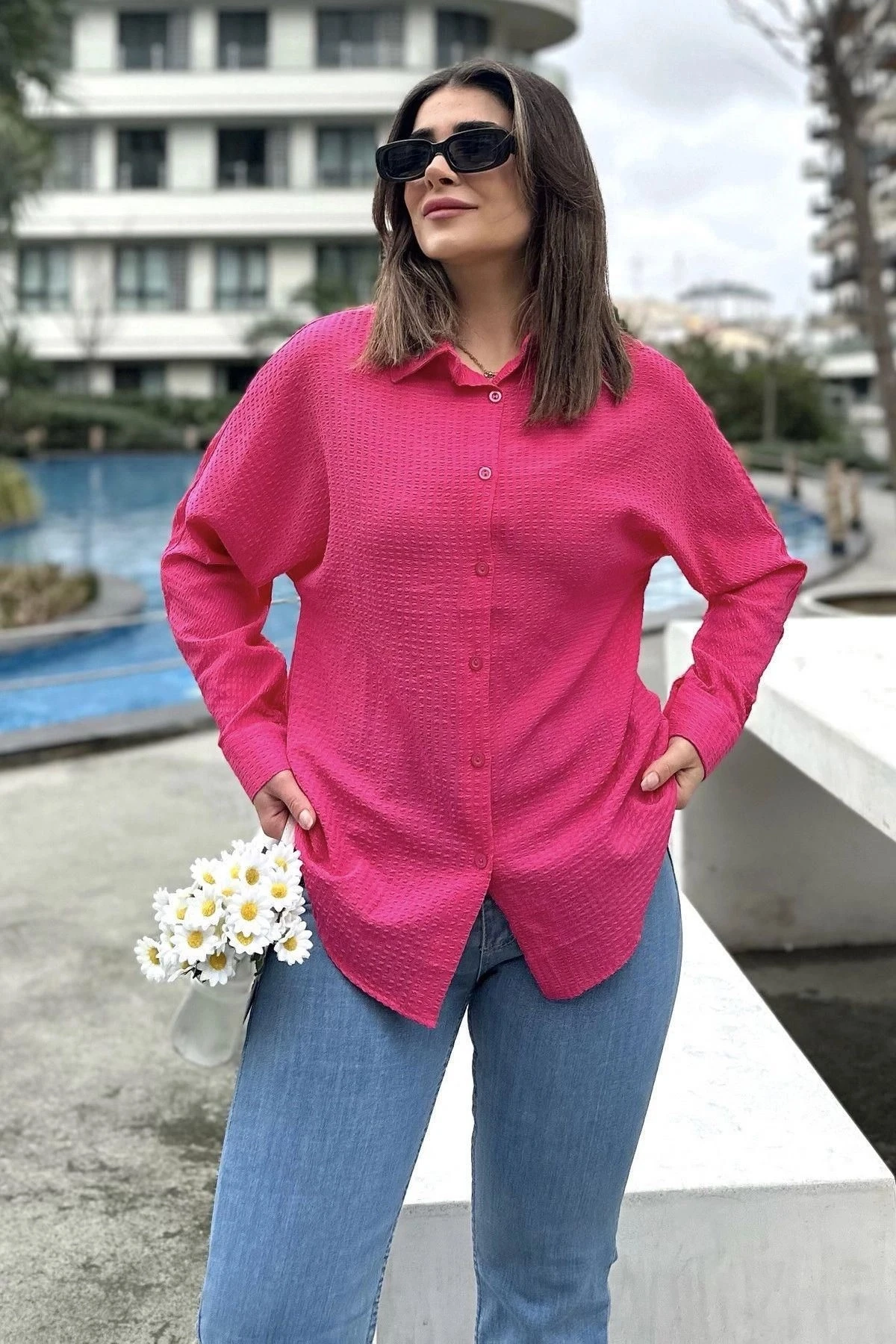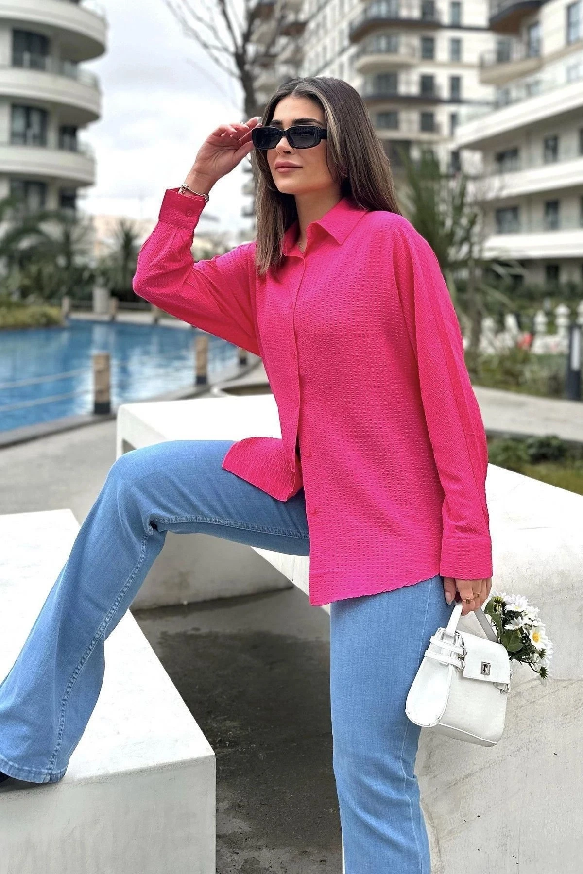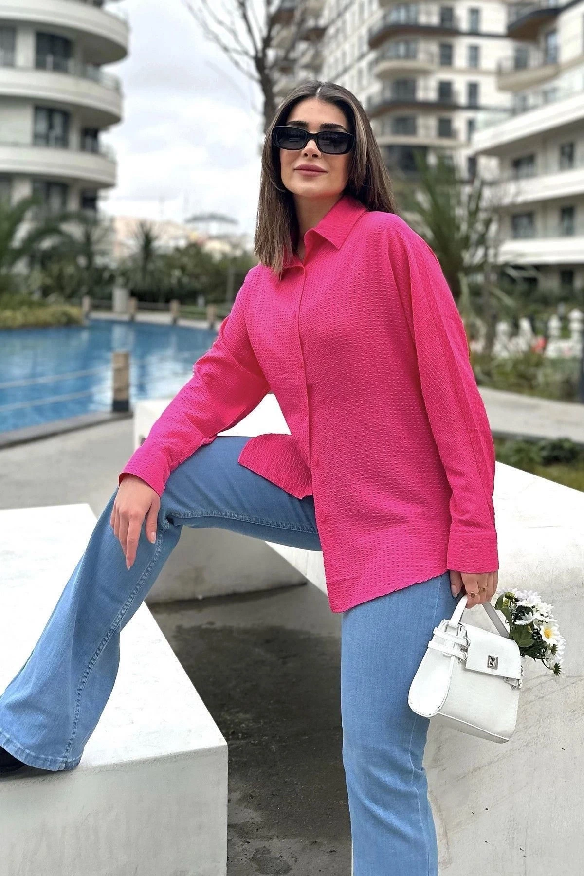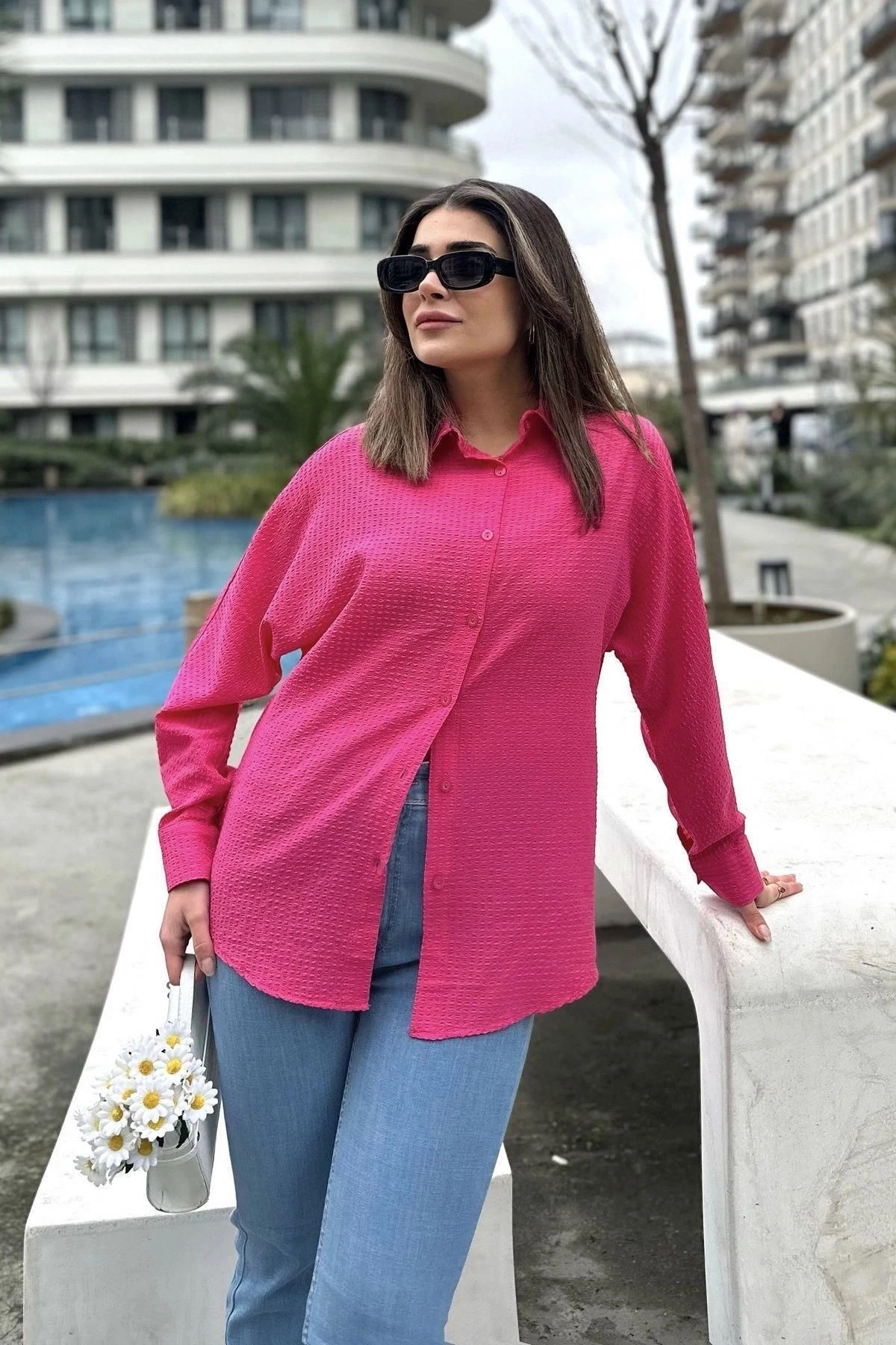 Kadın fuşya Basic Model, Gofre Kumaş, Salaş Gömlek