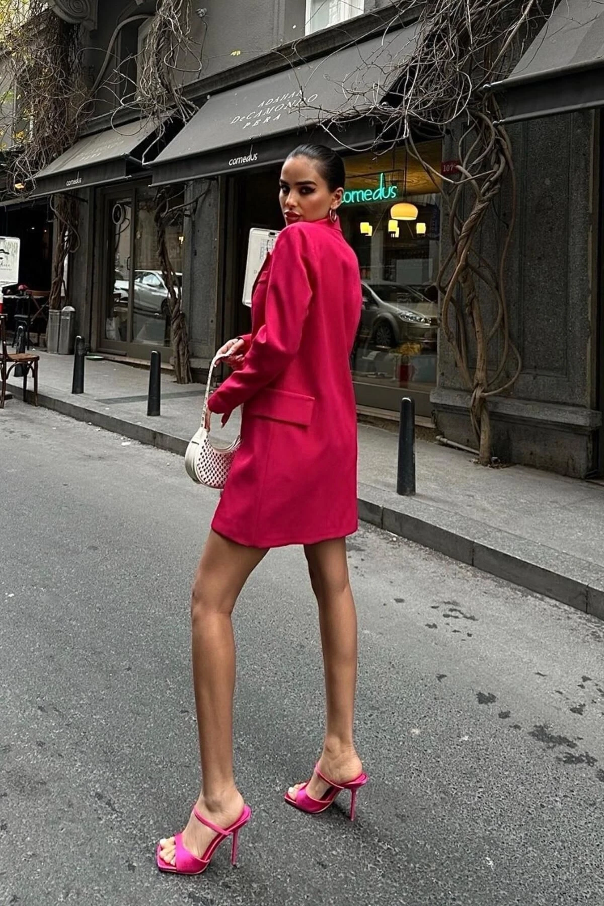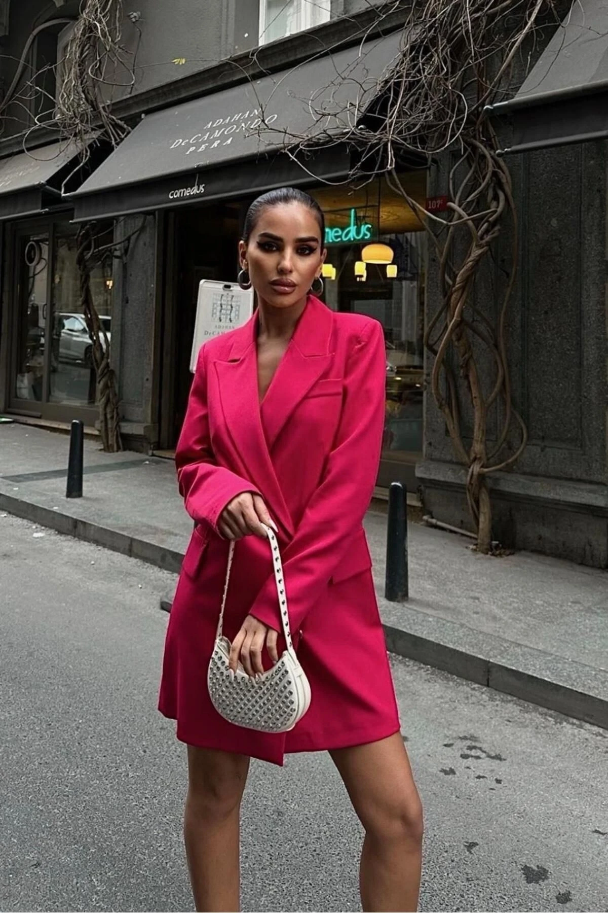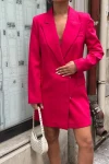 Kadın Fuşya Dokuma Kruvaze Kısa Elbise