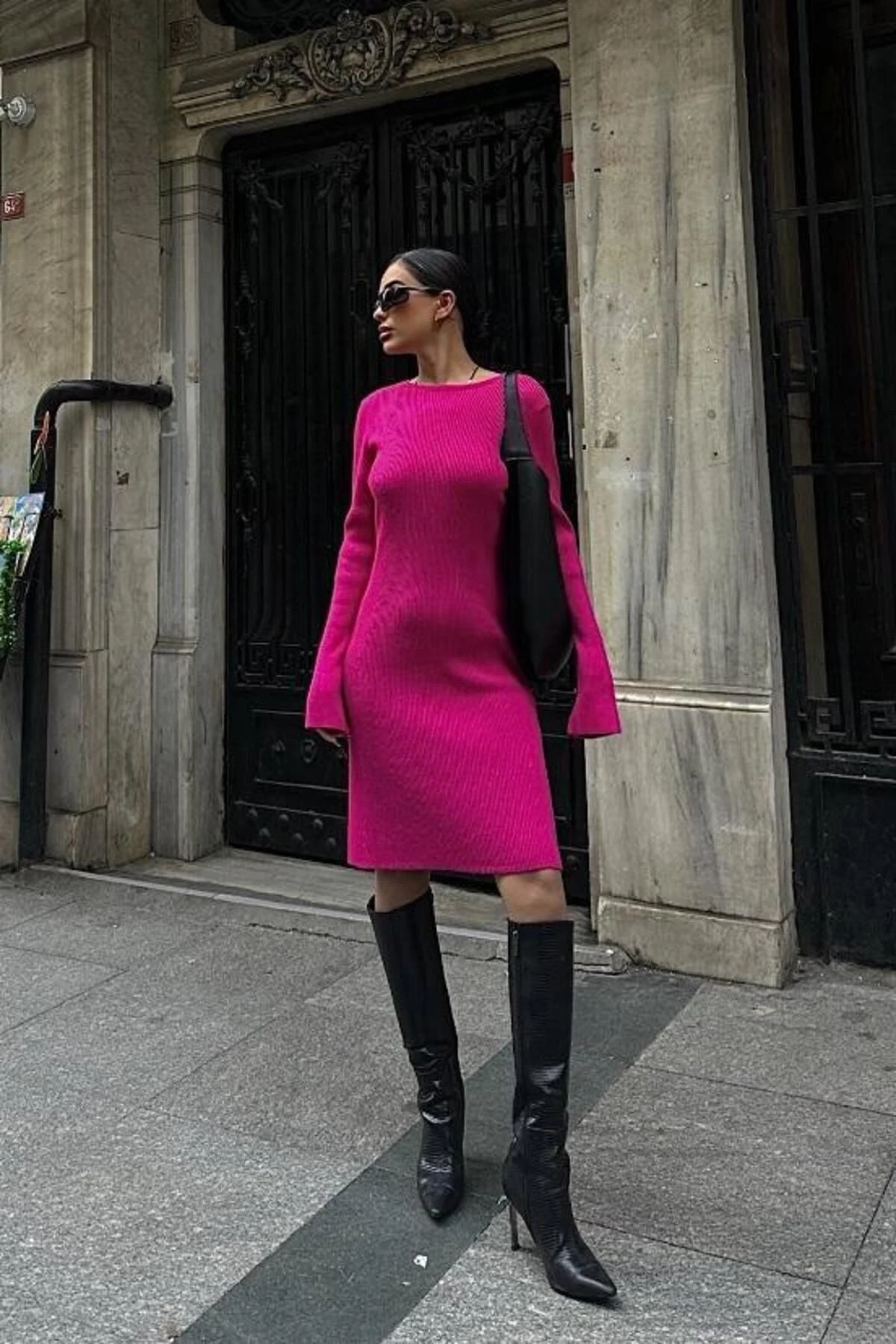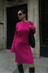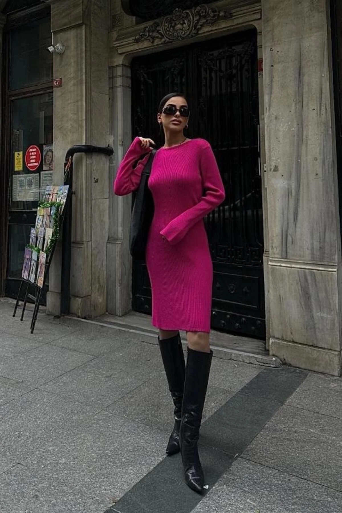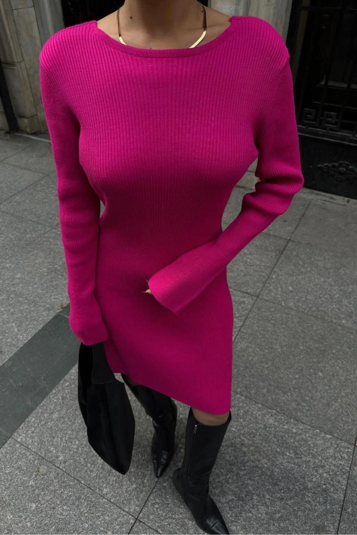 Kadın Fuşya Sırt Dekolteli Triko Mini Elbise