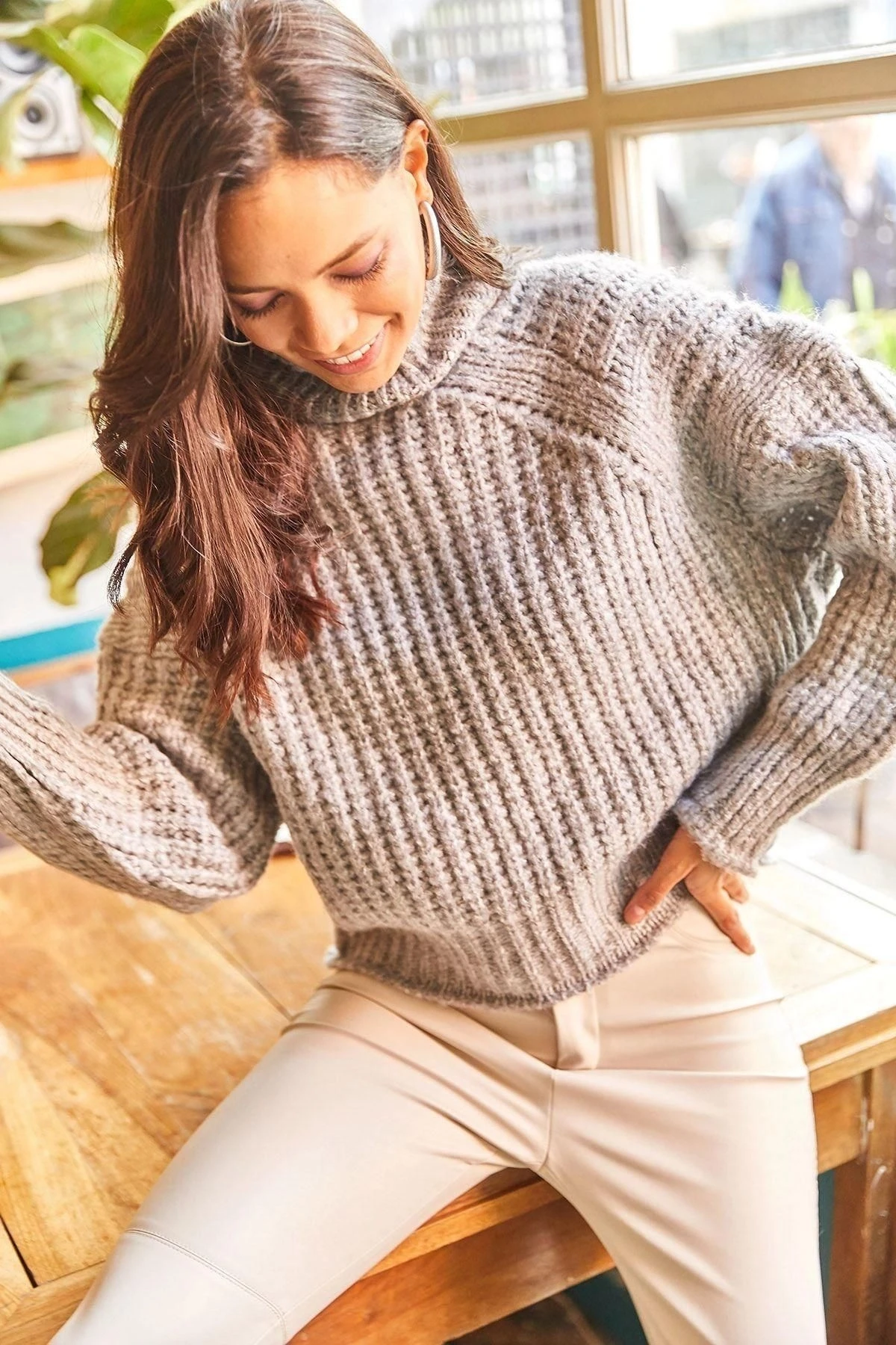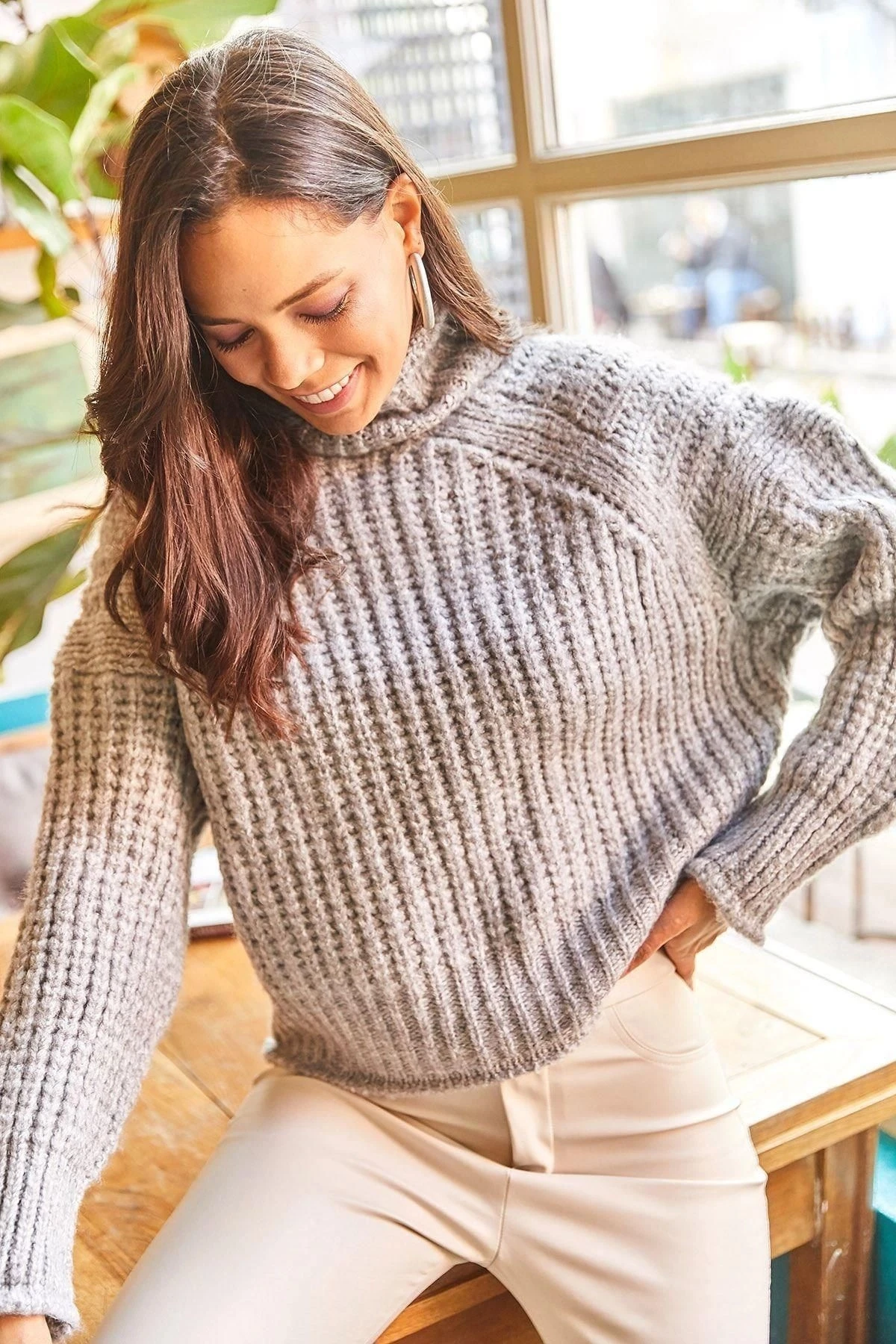 Bu muhteşem gri renkli balıkçı yaka kazak, zarif ve şık bir seçenektir.; Uzun kolları ve omuzlarındaki örgü detaylarıyla dikkat çeker.; Regular kesimi ve standart boyuyla her vücut tipine uyum sağlar.; Bu kazak, %95 viskoz ve %5 elastan içeriği sayesinde hem rahatlık hem de esneklik sunar.; Viskoz malzeme, yumuşak bir dokunuş ve pürüzsüz bir his için idealdir.; Elastan ise kumaşın esnemesine yardımcı olur, böylece hareket özgürlüğünüzü kısıtlamaz.; Gri renk, zamanın ötesinde ve her mevsime uygun bir seçimdir.; Hem klasik hem de modern tarzlara uyum sağlar.; Bu kazak, gardırobunuzdaki herhangi bir kombini tamamlamak için mükemmel bir temel parçadır.; Kazakta bulunan örgü detayları, tasarımına bir dokunuş ekler ve görsel çekicilik sağlar.; Bu detaylar, sadece basit bir kazak yerine özel bir parçaya dönüşmesini sağlar.; Balıkçı yaka ise klasik bir tarz sunar ve boynunuzu sıcak tutarken şıklık katmaya devam eder.; Bu gri renkli balıkçı yaka kazak, herhangi bir mekanda veya herhangi bir etkinlikte giyebileceğiniz çok yönlü bir seçenektir.; Şık ve rahat olmanızı sağlar.; Herhangi bir kombinle mükemmel bir uyum sağlar ve tarzınızı yansıtmanıza olanak tanır.; Bu kaliteli kazak, kumaşının dayanıklılığı ve şık tasarımıyla öne çıkar.; İster günlük kullanım, ister özel bir gece için olsun, bu kazak size stil ve konfor sunar.; Moda ve işlevselliği bir araya getiren bu kazak, gardırobunuzun vazgeçilmez bir parçası olacak.